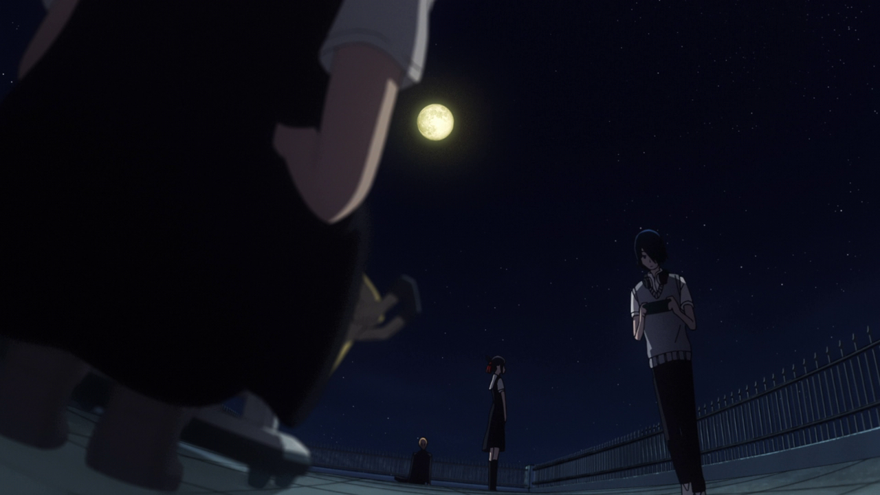 It’s also interesting to see the different perspectives of Kaguya and Shirogane had on the story. With Kaguya viewing the story as tragic and essentially hates the moon because of it, while Shirogane saw it as while tragic, there was still some sort of hope within it. It kind of says a lot on their upbringing and view on life in general. Kaguya was raised in such a rich but cold and loveless environment, that it makes sense she would develop a negative outlook on things. However, with Shirogane, he and his family are close (aside from his mother) and being poor most likely gave him an appreciation for the smaller things and a hope that if you work hard, things will get better. And it was honestly touching for him to say that if he were the man in the story, he would have waited for Kaguya and wouldn’t have let her go in the first place, going as far as to go to the moon and have stolen her back. Which sets up a bit of foreshadowing I would assume. Since in theory… if the two do get together, would Kaguya even be allowed to be with him due to their different social standings? It has been brought up before of whether it’s even a possibility or not after all. Though I guess we’ll have to wait and see what becomes of it.