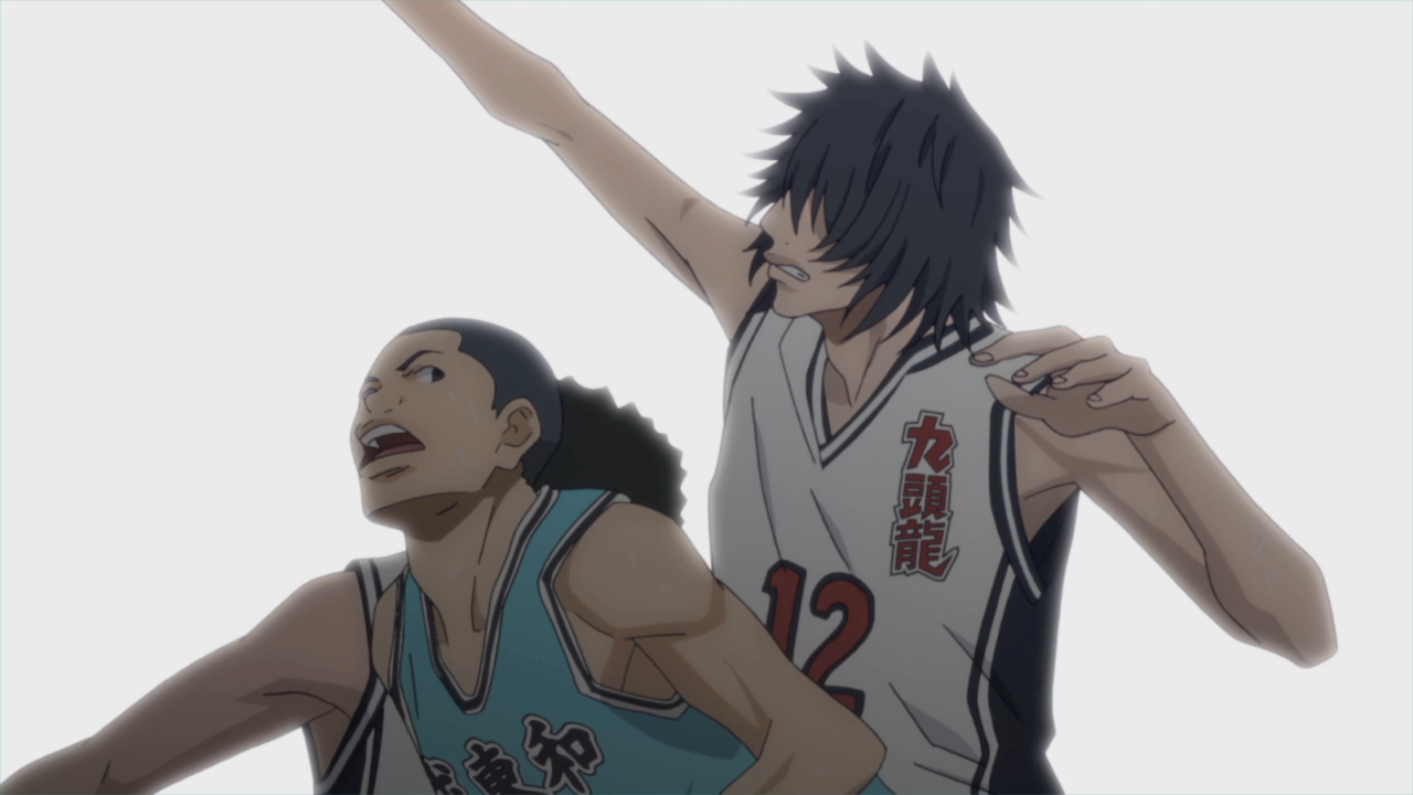 Since the beginning of the match I’ve talked quite a bit about how happy I’ve been with the series taking the time to develop their opponent. By developing the Shinjo team, it makes it difficult to want total victory for Sora and his team. Especially when they turn the focus to Takahashi and Kojima. As much as I truly believe that Sora and everyone else is a group of misfits who came together with their passion for Basketball and that they are the underdogs – Takahashi and Kojima have always been in that underdog position. It started out as just the two of them and they essentially built the Basketball team from the ground up. They’ve put in so much work to get where they are now that it would just be unfortunate if they were to lose it all now. And I can’t even imagine what Kojima would be feeling in this moment. Due to an injury he is unable to play and he has to watch his dreams slowly slip away from him. I honestly can’t blame him for wanting to put himself back in the game to chase his dream, and because if it I really hope he and Takahashi are able to fight till the very end. Ligament injuries are no joke, I’m impressed that he was even able to hold up on the court for as long as he did. But at the same time, I get why he’s pushing himself to keep going. As someone who had a ligament injury in a similar situation I understand the feeling of wanting to finish the game out and be able to give it your best shot regardless of the pain (and it really does hurt a lot!). If they lose, at least he was able to give his all in his final match and not have to live with the regret of not playing (arguably, he could potentially mess up his knee for life). And if they move on, he’s closer to winning the Inter-High.
