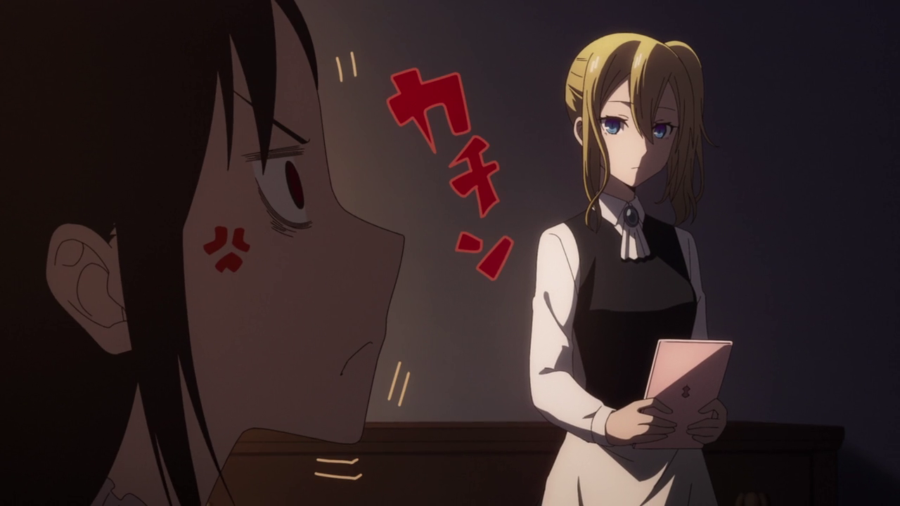 And while it seemed like a hopeless situation, Hayasaka reluctantly takes the challenge. But hot dang, Hayasaka sure knows how to put on an act. She’s SO much different than how she usually is. But she was challenged and she’s going in HARD. You don’t challenge Hayasaka, foolish mortals. You have obviously underestimated her abilities. She freaking assembles small computers on her days off and is able to sneak past security to break in. Not to mention, she seems to be an expert liar, though there were some things she said that probably went against what she said prior. But Shirogane being Shirogane, only honed in on that she was in a similar situation as him and admired her efforts, much to Kaguya’s exasperation. The fact that Hayasaka was using literally ALL of a typical “how a shoujo romance starts” in her act was actually freaking hilarious. Even going as far as spewing typical shoujo lines and gave him the face of “just fallen in love with you.”