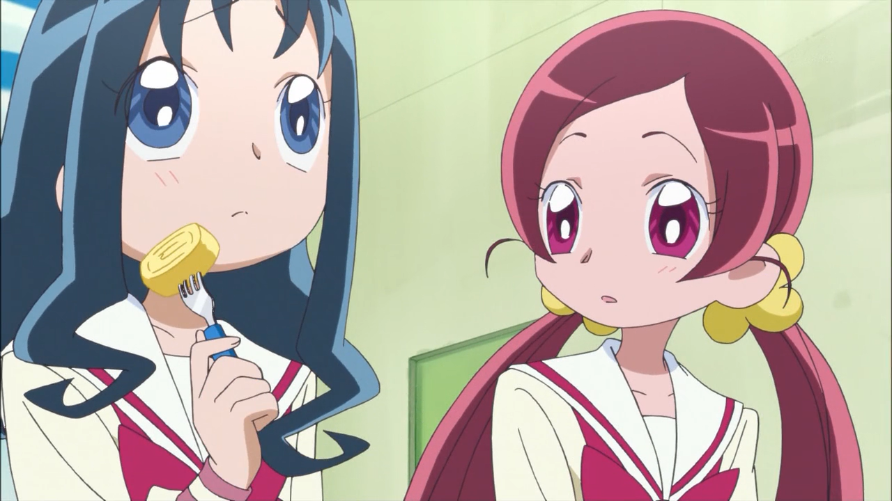 It was Erika’s turn to become a Precure, and the recruitment came into play after she had shared she had the same dream about the fall of Cure Moonlight. The fairies wasted no time and immediately revealed themselves to get her onboard, (side note: RIP Tsubomi’s lunch, they ate it all), but she had shut them down by saying she didn’t have time. But having done so, I did find when she finally did declare she would become a Precure, it turned out to be quite lacking. How should I describe it… It was static so to speak. (Albeit the transformation charming as ever)