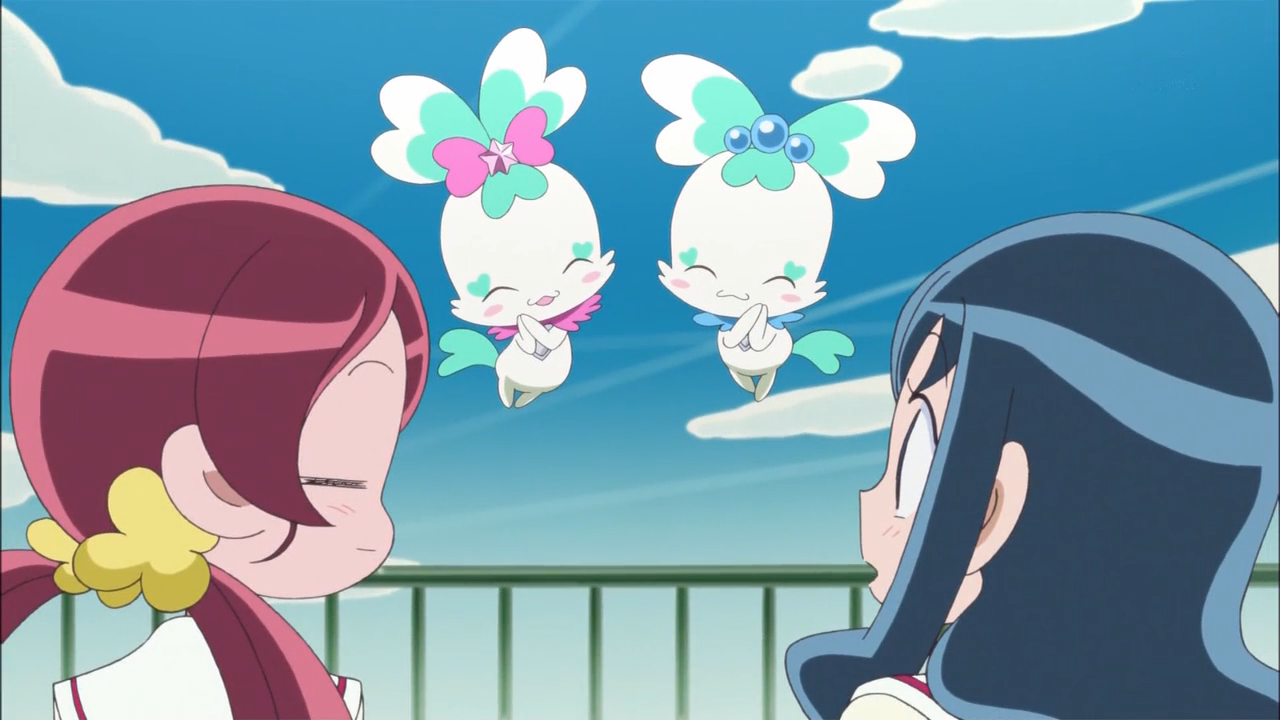 In this episode Tsubomi struggles with her confidence of being a Precure. Being a clumsy fighter is hard, especially when she feels like she’s dragging her partner down. She is so pitiful that even the enemy, General Kumopjacky gave back her Precure Tact when it landed in his hands. Talk about oof. Sure he says he just wants to have a fair fight, and even encouraged the girls to become stronger so he can defeat them, but his colleagues aren’t too happy with that approach.