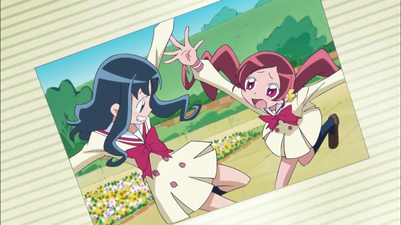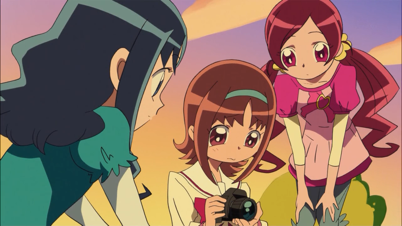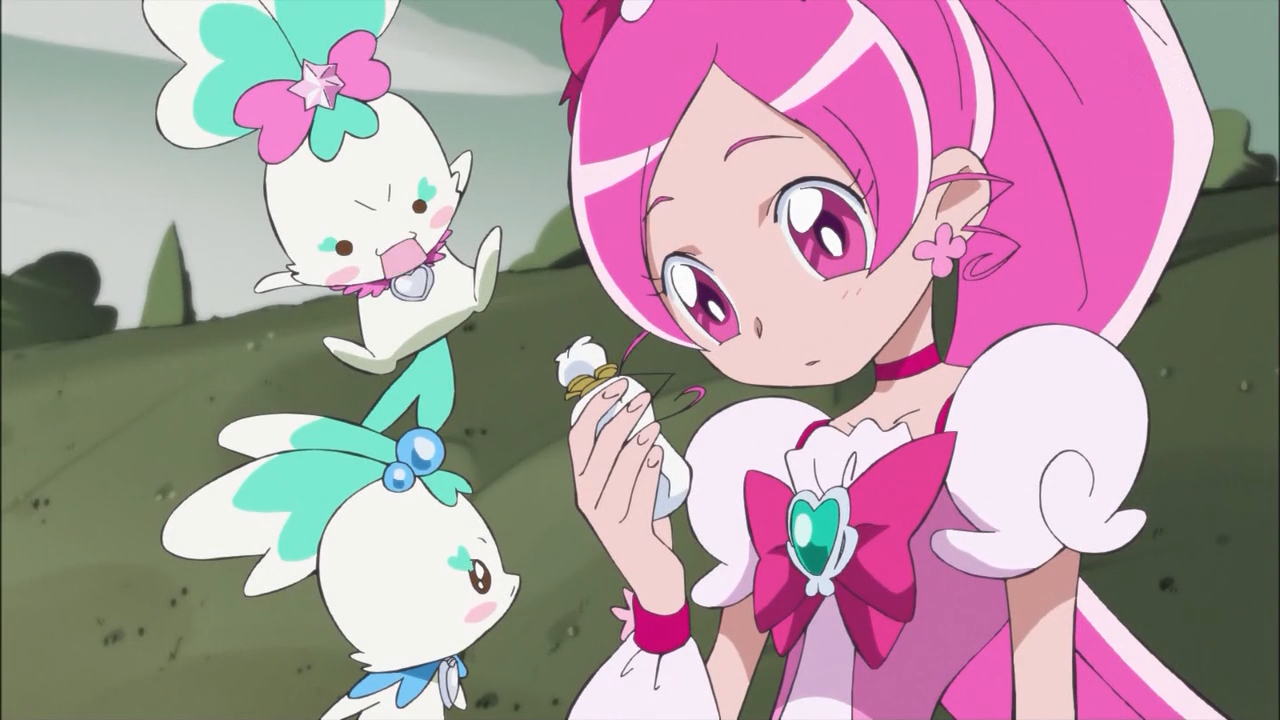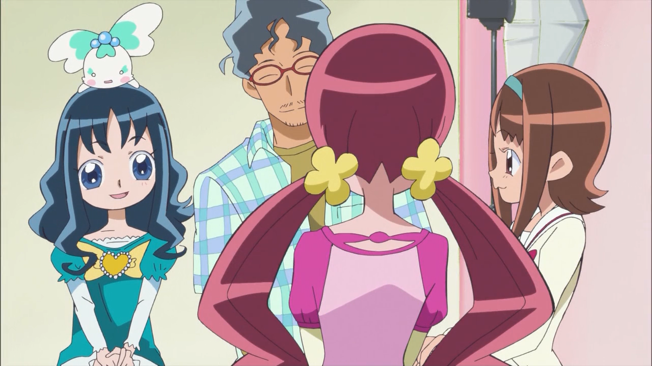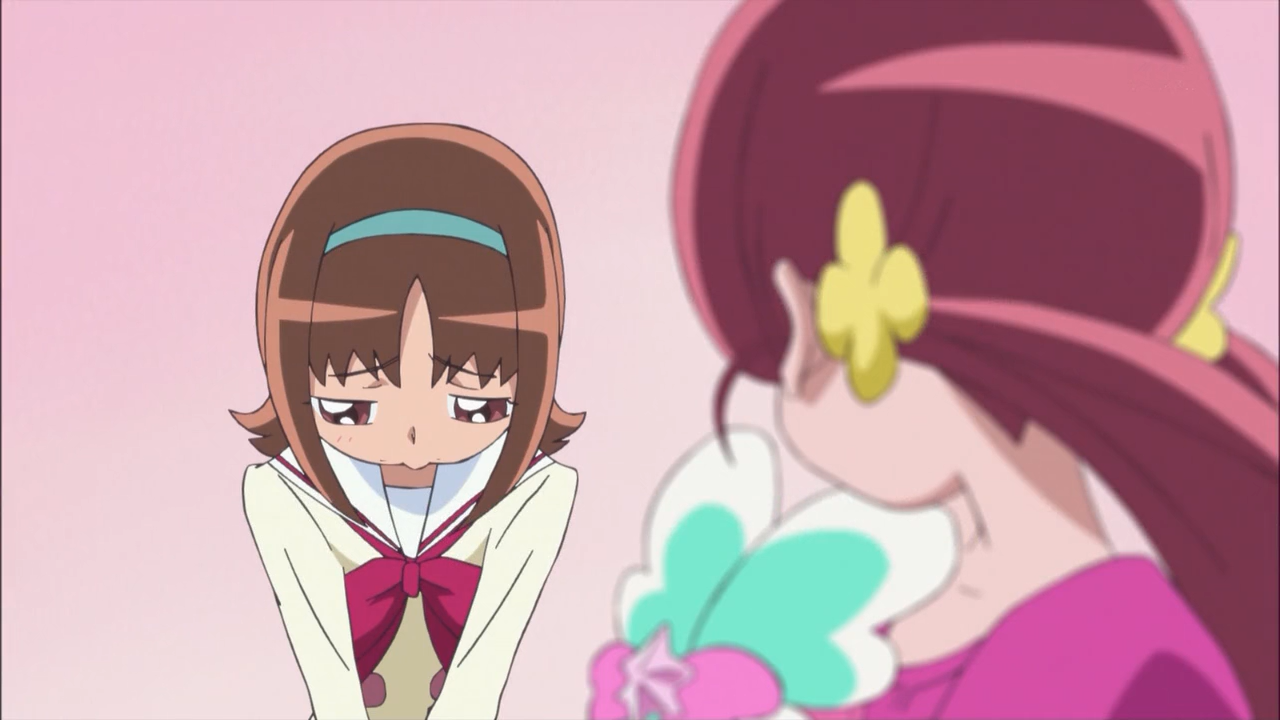 Lastly, while Kanae was going around and about in search for the Precure, I was surprised that Sayaka actually had a solid tip of referring her to the botanical gardens! I thank goodness the fairies overheard and were able to give Granny a heads up— though they were the ones that were spotted and had to be bailed out by the handsome man who has saved Tsubomi in her first fight). At this point I’m convinced he is someone Granny knows, or maybe related to the Heart Tree. I legit can’t remember, it’s been too long… Either way he was able to serve as a smooth enough distraction to buy time for Granny to get to the scene and successfully steered her away by feigning ignorance. (Consider themselves lucky that she didn’t take a picture of Coupe, who is weird enough to get a shot of).
