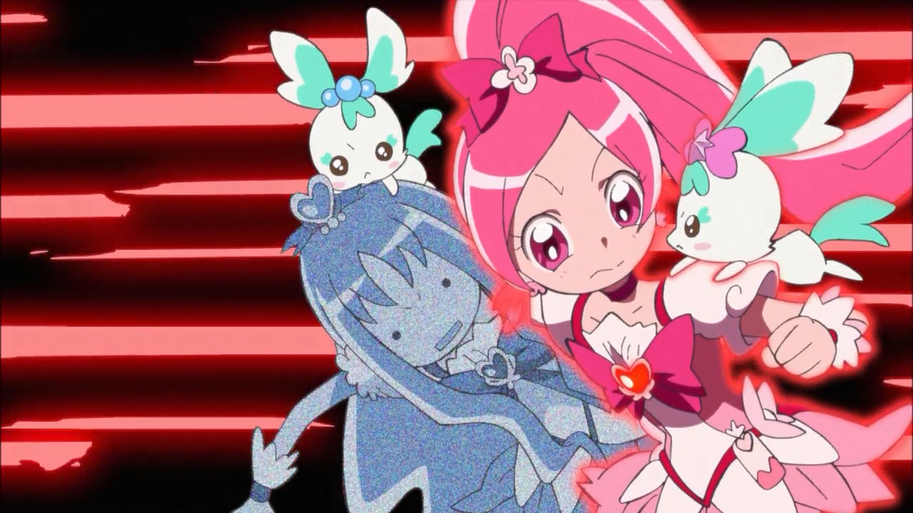 As for the fight this week, once again the poor soccer kids were the victims of Sasorina’s Desertrian. (These kids always seem to be at the field at the wrong time, keep this up and they are going to be traumatized sooner or later.) Erika took the shot for Tsubomi, and was unable to battle. So for the first time we got to see how the Heart Seeds can be used to grant them buffs in battle. Tsubomi used the Red Heart Seed which granted her a Speed buff. We also saw her be a bit creative her attacks, the most silly one we have seen so far was the butt-punch (I can’t believe they actually did that, but then again, the fairies are shitting heart seeds, so why not?)