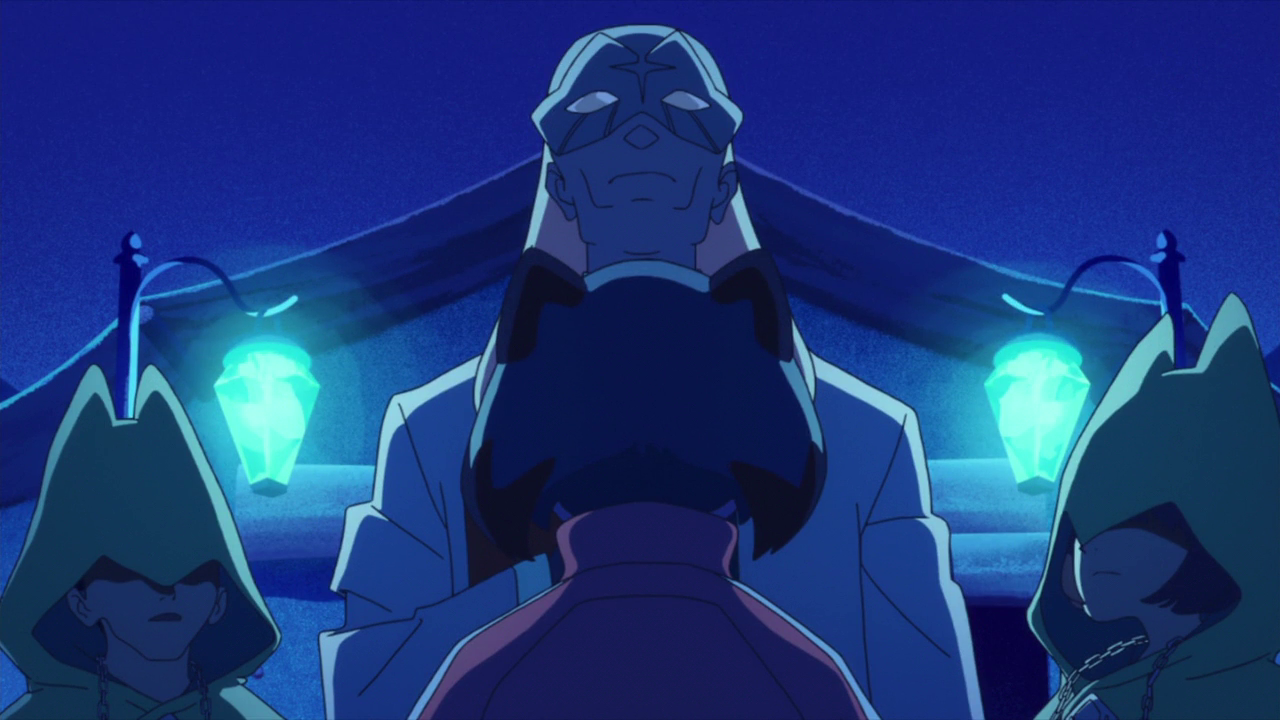 Now I don’t know about you, but Boris gives me the creeps and I feel like Michiru is justified to call him “gross.” Anyone who is voiced by Takehito Koyasu immediately cannot be trusted due to the voice actor voicing some very prominently shady characters. Especially since this guy is the leader of this Silver Wolf Cult which essentially doubles the amount of shadiness surrounding this guy. And then he goes and cradles Nazuna, telling her to “be more beautiful than a god.” Which I feel may be a brainwashing trigger for her. But we’ll see. Either way, that whole scene felt super unsettling and I need him to back the heck up. Even though Nazuna claims that he’s “not gross” and is the one to help her when she got taken to a science facility. That scene said otherwise.