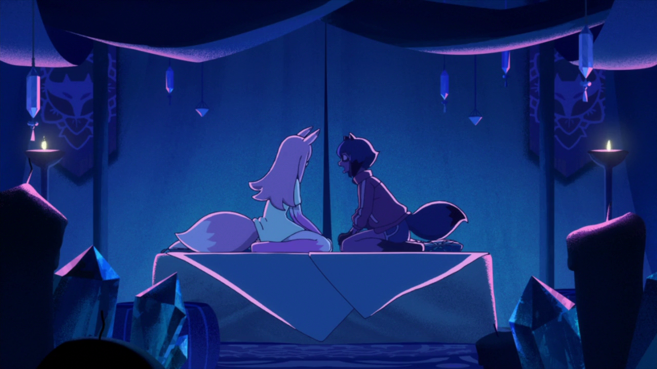 As soon as Nazuna turned out to actually be a fox beastman rather than a wolf, my mind immediately went to Animal Crossing. While I personally have not played the games, I’ve seen some videos on it in regards to Tom Nook and Red the fox. Seeing Michiru as a Tanuki and Nazuna as a fox made me think about it, especially since both animals they are a part of are known in Japanese folklore as tricksters. Often using their shape shifting to fool people. Not only that, but Tanuki and foxes are supposedly rivals in folklore so my immediate thought was something very bad was going to happen between them. I mean, Nazuna sure looked pretty ominous in the opening… They also kept hinting that they would be on opposing sides. When they were just talking in Michiru’s room, Michiru was sitting on a blue bed while Nazuna was sitting on a red couch. If that isn’t obvious foreshadowing, I don’t know what is. And what do you know, a clear division was put in place between them when Nazuna showed her true colors. While I do think she’s brainwashed, she could also be letting all of this worship and praise get to her head, either way, it turned her into a terribly manipulative person.