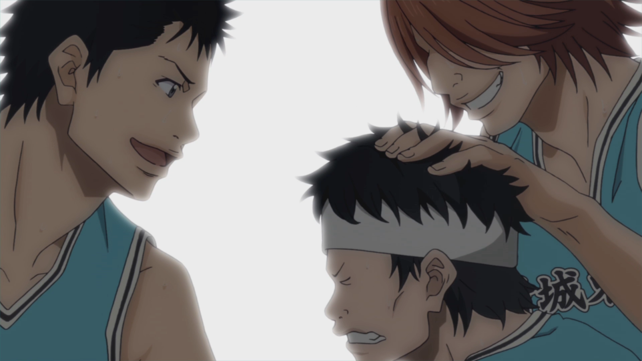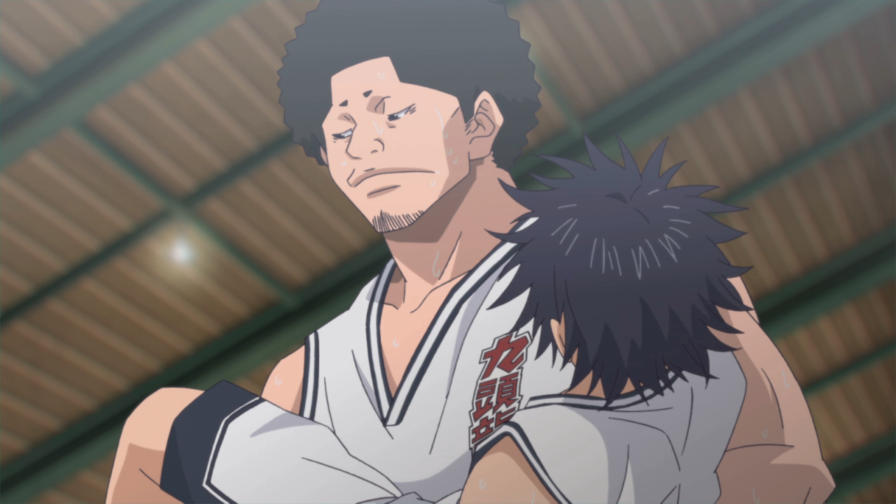 Understandably, Sora is beating himself over his inability to stay in the game and he begins spiraling down the “if only” path. He doesn’t feel as if he can stand out on the court like he wants to, he doesn’t necessarily have the skills that he wants as a player and is instead jealous of his teammates. And I think out of all the teammates, I’m glad that Mokichi was the one on the bench with him to combat those thoughts. Mokichi’s relationship, like the other’s is complicated, but he was a person who was put into a box. He fit the criteria and so he was stuck there, no opportunity to try something else. Yeah, his height is helpful, but it really locks you in to what kind of player you can be. And so, it was nice to see how that translated into potential for Sora. Sora doesn’t have to fight against a box instead there are many ways he can shine on the court.