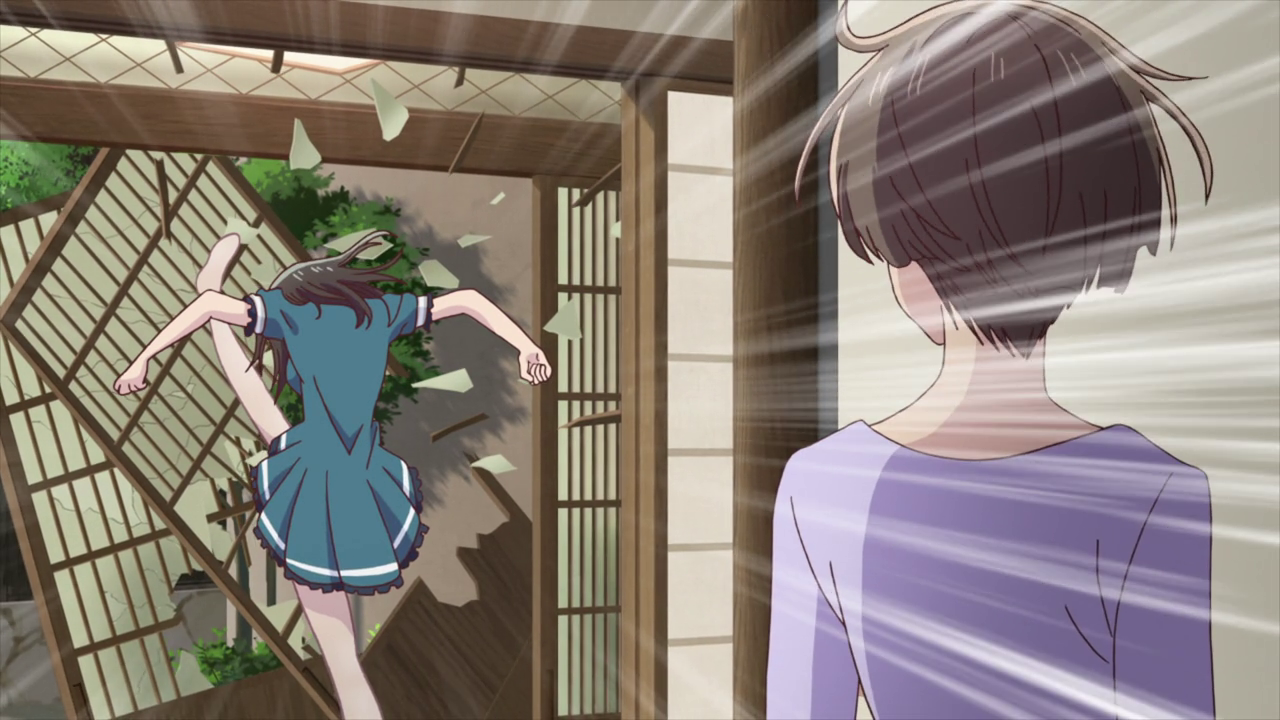 Before we get into the actual meat of the episode, I did want to bring up something really quick. I don’t think we ever really got much of Kagura’s family, however, I do appreciate that her mom is actually worried about her well-being, knowing full well how Akito has severely injured several other of the Zodiac members. I’m sure that Kagura’s mom falls into the “very protective” category of parents of the Zodiac that Momiji had listed, but I feel like protective is a lot better than rejecting or indifferent. Especially since it seems that Kagura is one of the only members who hasn’t been physically hurt by Akito. It’s also nice to see a Zodiac member and their parent get along well with one another as neither one seemed to have a problem talking to each other. Even going as far as to take Rin in when she had no where else to go. I kind of wish we got the inside look and see how some of the other Zodiac members interact with their parents like Kagura, Hatori, Shigure, Ayame and Hatsuharu. I also found it hilarious how the mom didn’t even blink when Kagura kicked down the door. Instead treated it like this was a normal thing, which I’m sure it is. She was just so calm when it happened and I couldn’t help but laugh. Especially since I’m sure she had Kagura fix it.