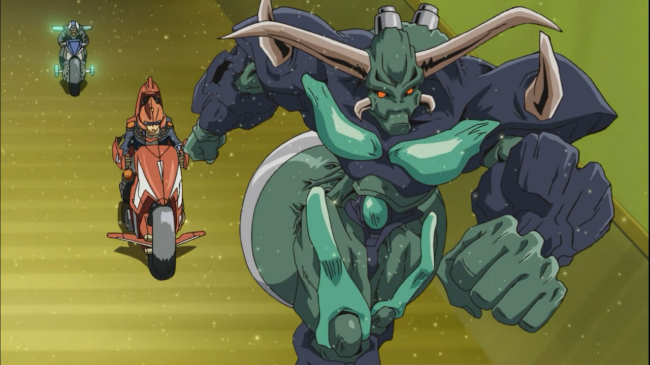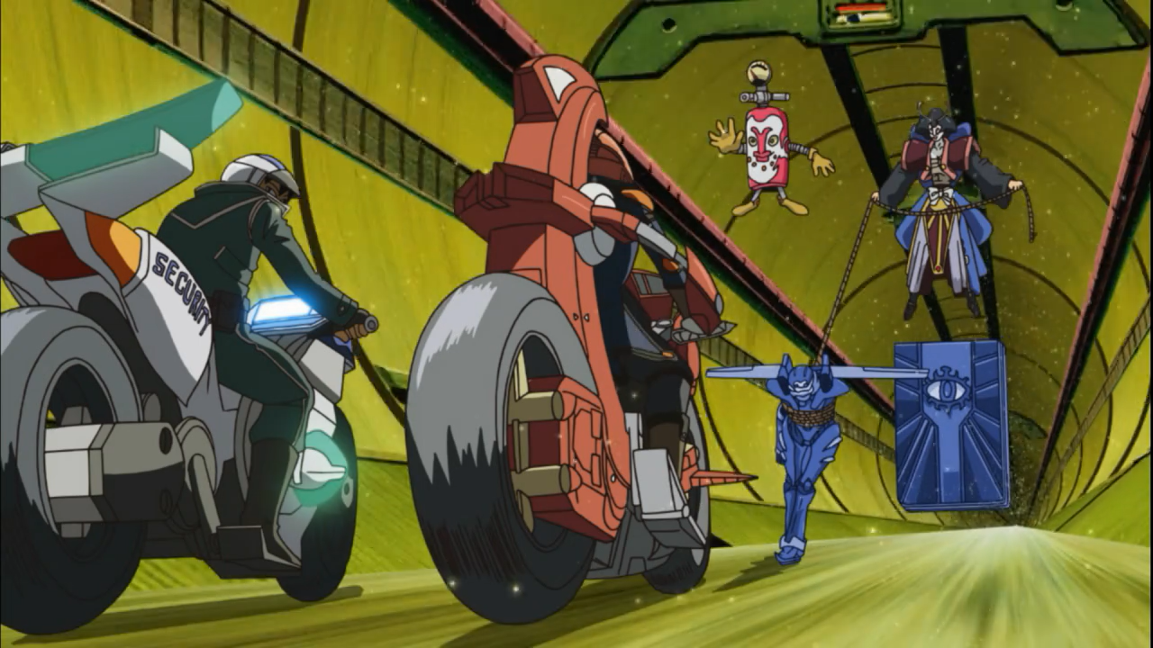 After spending so much time preparing for this moment, from rebuilding a D-Wheel from scratch and running a series of simulations, it was finally time for Yusei to carry out the risky mission of getting out of Satellite. Fortunately he was able to complete the first step, getting through the pipeline. It was a close call no thanks to some interference from a certain bitter security officer along the way. Ever since their encounter, the security have been keeping close tabs on Yusei, and Ushio was ready to be dispatched at any moment notice. Talk about being a salty loser.