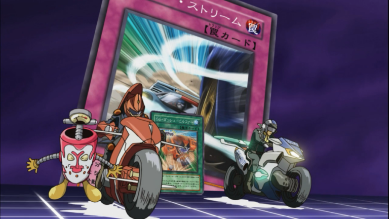 Tonight Ushio brought out the Special Hot Pursuit deck that was entrusted to him by his superior. It was cleverly designed to force the target into battle by connecting both drivers through Speed World via Speed Spell. It also serves to prevent the target from gaining speed counters through the effect of Speed World during standby phase. And in the beginning, it did do its job, but luckily for Yusei, he had the trap card Slip Stream on hand. It enabled him take advantage of Ushio’s share of speed counters to get him out of there. Now, while the security team seem to have the right idea going for the Pursuit Deck, we saw how through trap cards like Slip Stream can exploit what is supposed to be a disadvantage. This was particularly the case when Ushio mindlessly decided to stack his Speed Counters, not taking into consideration his opponent would have a way to take advantage of that. It just goes to show, he certainly didn’t learn his lesson not to underestimate his opponent– regardless of their background.