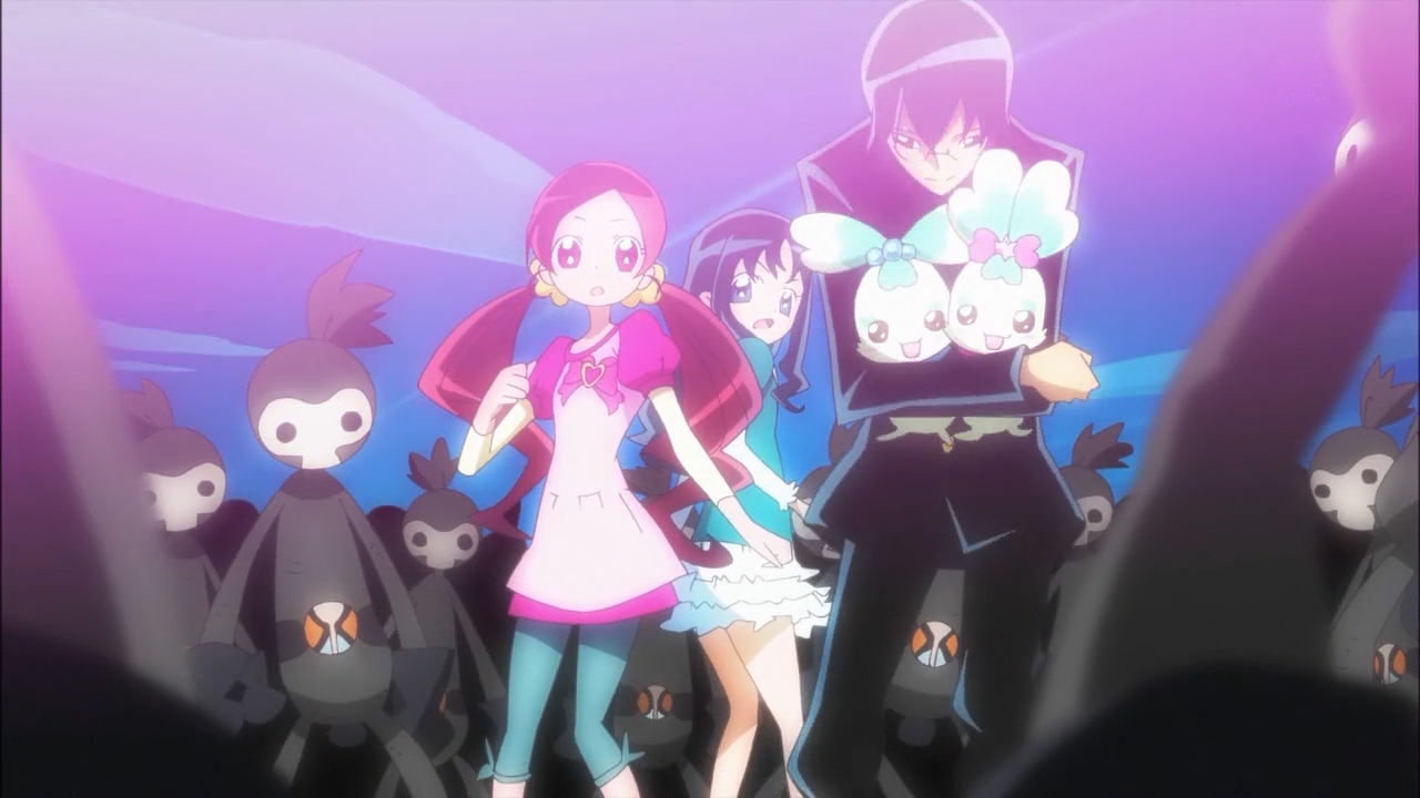 The Desert Messengers have no intentions of laying around in wait as the girls steadily collect the Heart Seeds. So he finally sends out his trusty “Dark” Precure (who is basically an “anti-precure” of a sorts). She pretty effectively inflicts a lot of damage, wrecking havoc around town with the intent of soiling the girls’ reputation. She was also set to eliminate them for once and for all, but for whatever reason, she decided to hold back when she spotted Yuri, otherwise known as the fallen Cure Moonlight. We can see that her precure seed (the jewel the girls attach to their perfume bottle) is broken, so it makes sense why she is unable to transform. She also quietly had given the girls some advice, but even so, it was not one to be applied to the Dark Precure. Rather, the Dark Precure is not an opponent the girls can currently face at the moment. When they tried to apply the final strike on her, instead she deflected it and caused them to lose their precure form. It goes to show the girls have a long way off before they have any chance against her, and if god forbid they do encounter her again too soon, they are certainly in for a world of trouble. Nevertheless, it will be interesting to see what kind of excuse she is going to use when she has to explain to Professor Sabaaku about why she failed to carry out the task of destroying the heart seeds, alongside taking the girls out. She could have easily done both, and yet she decided not to.