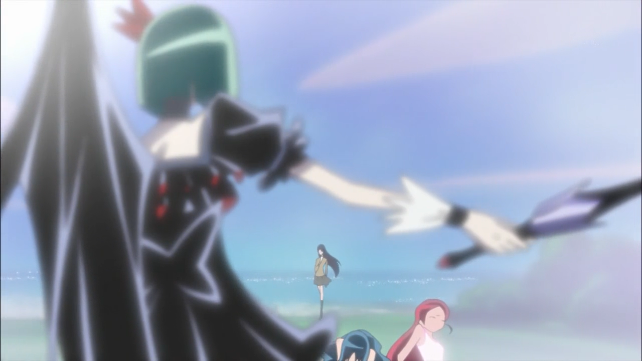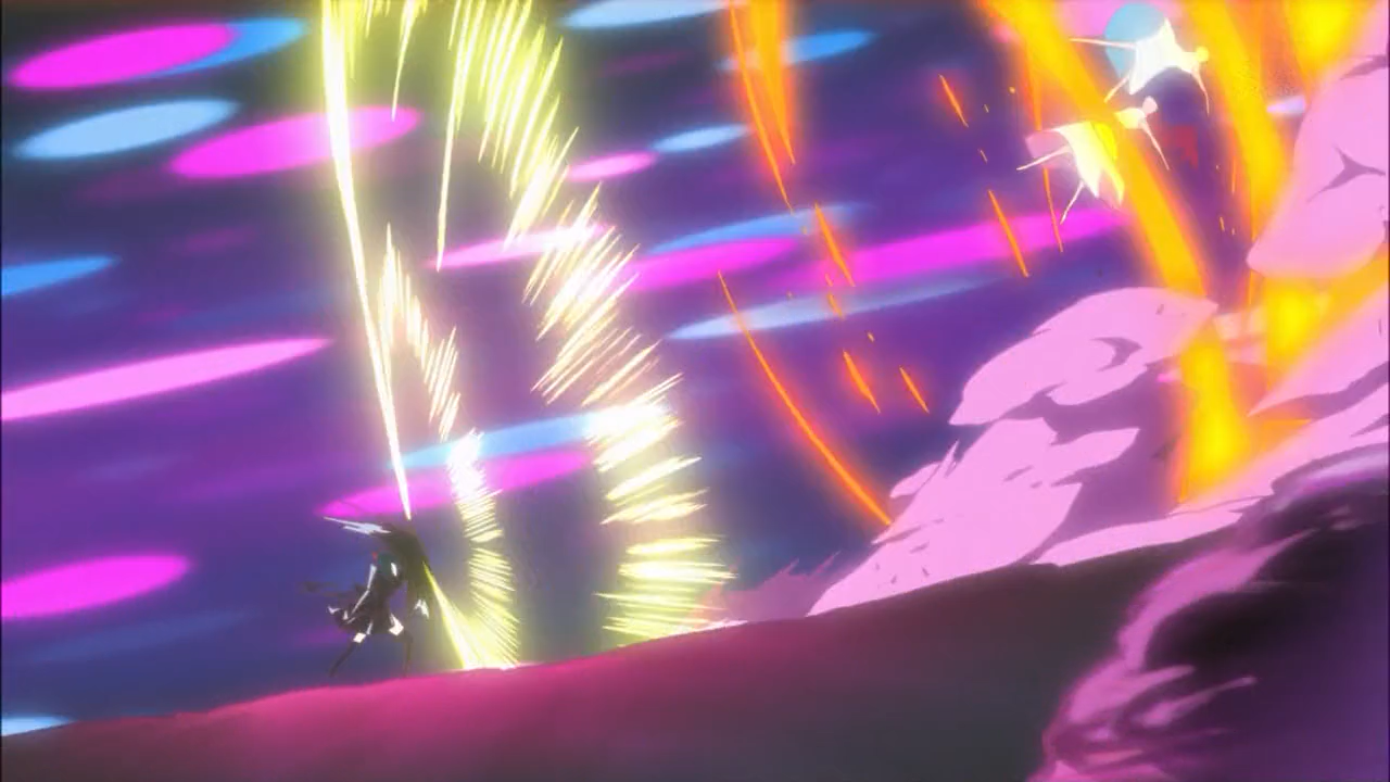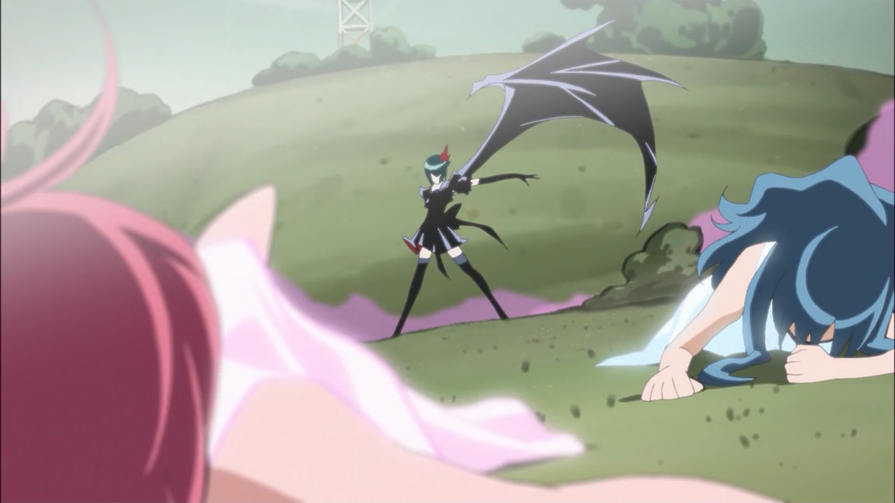 While I did enjoy the episode, the only thing that I thought was quite jarring was the scene of the girls walking and chatting as normal and yet their surroundings was quite obviously not the usual. Dark overcast and black petals floating, oh and not to mention explosions. They should have at least either made the girls more self-aware of their surroundings or presented a more appropriate transition to the chaos around them.