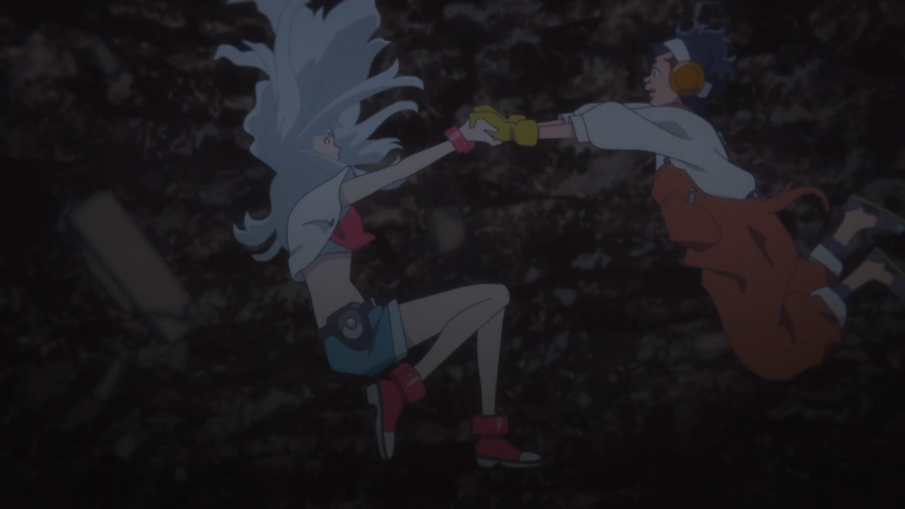 My absolute favorite part about this ending was the connections it made to the first episode. It started out with the same scene from episode one where Echo is looking at Jimi, but this time Echo is taking that role and taking on the final battle ready to amplify the feelings of those around him. And when he finally breaks through to Mu and she falls down the hole he’s the one who rescues her by calling out her name and that she’s his Mu. I adored that moment of rescue because when they first met it took Mu saving Echo from his death for him to realize that he didn’t want to stay in Liverchester and that he wanted to experience what the world has and now Echo is able to save her from her death by saving the world together. And seeing the Earless and Humans live together after their grand battle together was really charming! Echo made his way into the Players Encyclopedia and even gathered some fans himself! I loved seeing the Earless boy and the other girl interact in Oasis because it was very reminiscent of Echo and Mu when they first set out on their journey. It’s nice to see others inspired by their actions!