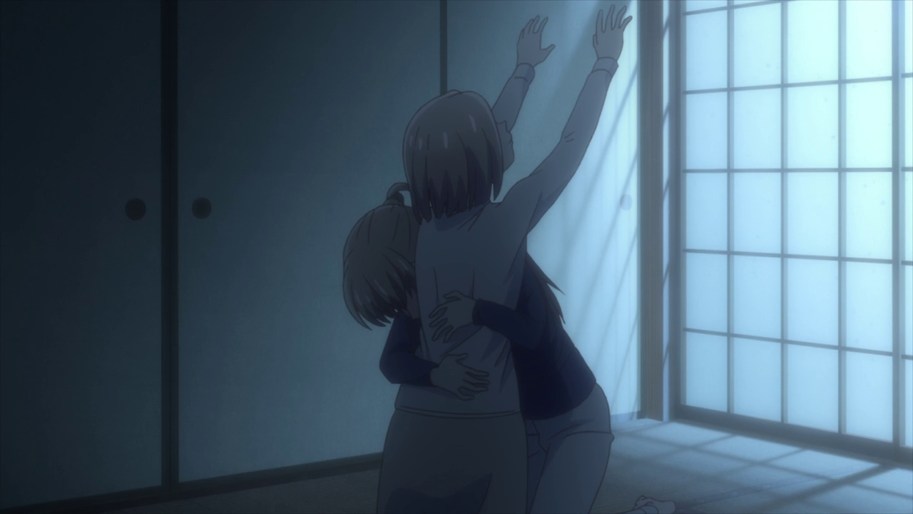 I also want to touch on the symbolism of those children playing in the river. It definitely had to do with representing Hatori and Mayu’s state of happiness. It starts out with one kid splashing the other, probably representing Mayu’s current state since she got to go out and talk with Hatori. And as they continue chatting, the other kid splashes back a little, showing that Hatori is enjoying the time a little as well but still holding back. And when Mayu starts getting upset, the kids stop playing. Going even further with one of them was stooped down trying to search for something while the other kid just watched, showing Mayu searching to understand why Hatori felt that way about happiness. And when Mayu was crying, basically showing her sadness for Hatori’s situation, the little kid seemed to have found something and showing the other. And then the final shot of the kids with both of them splashing each other with a lot of enthusiasm once Hatori offers to treat Mayu to something to eat. Interesting imagery, especially since I feel like the two weren’t able to ever allow themselves to find child-like happiness.