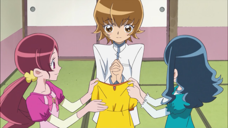 Other than that, this episode was really fun to watch. Itsuki gushing over cute things is adorable as ever and it was so cute how hard she was trying to keep her cool when they were in the fabric store looking for material to make her dress. We also got to see how easily she can get distracted by it, regardless of the situation she may be in. Crazy stuff is happening around them and the moment she sees the girls as Precure, all she can think of is, “PRECURE! SO CUTE!” Itsuki please!!!!