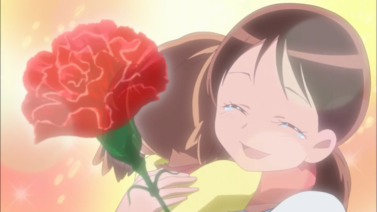 This was especially true for the sisters. For a conflict that stemmed from an explosion of emotions that had been tucked away for so long, this was the perfect opportunity for Rumi to hear and witness her sister’s pain in such a raw way. Nanami is so good at hiding her loneliness that there is no way Rumi would have been able to tell on her own. Heck their didn’t father noticed! When he turned his back to her to support we saw how Rumi was frustrated that he seemingly assumed she was probably fine, which in fact she was not. But now that Rumi understands how much her sister has done and given up for for her, gifting her the paper carnation was a special way to acknowledge that.