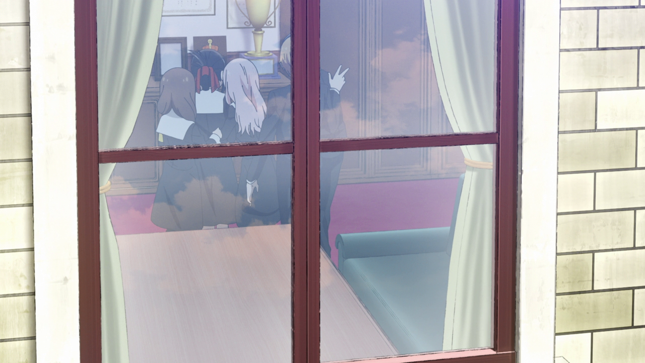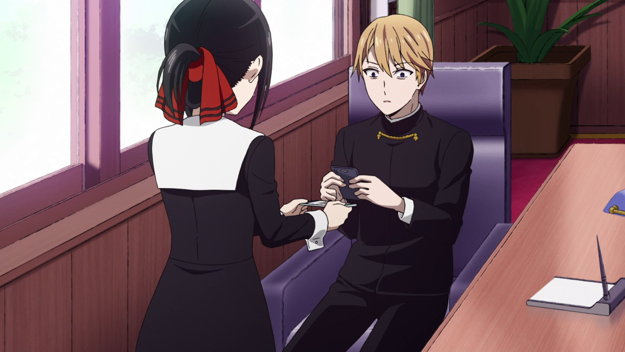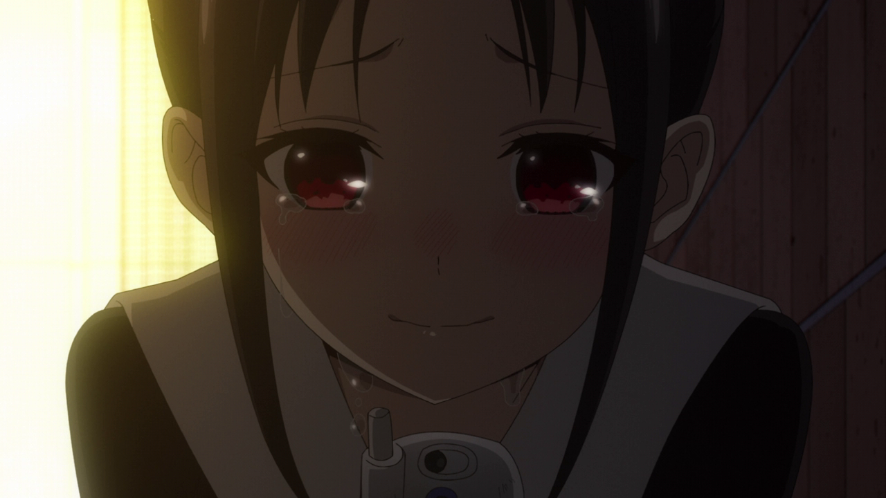 Another detail I noticed was Kaguya’s ponytail was basically portraying her mood throughout the episode. At the beginning it was up as usual, but once her phone broke, it was pointed downwards. But after everyone shared their pictures with the group, her hair went back up. It was a cute little detail and it definitely did its job to show just how dejected she felt.