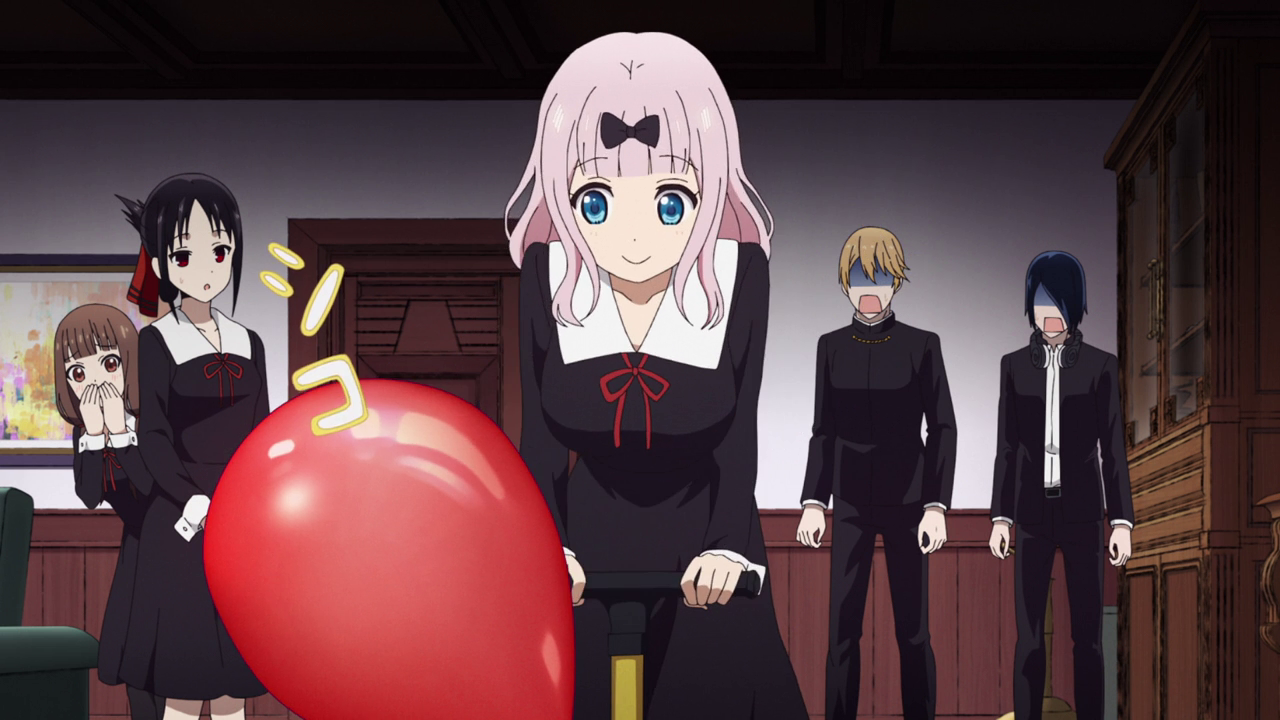 I’m gonna be honest with you. I felt pretty disappointed that the balloon popping game was going to be the season finale. I thought the season would end with Kaguya’s phone, leaving off on a touching note. But then it switched back to silly and I was a little annoyed at that. It was a cute little skit, don’t get me wrong, but it felt anticlimactic. Though I admit I laughed at how everyone would basically go back on their character development when faced with the terrifying presence of this giant balloon. Kaguya having to let go of the side of her face to blow up the balloon while internally freaking out over it was just hilarious. And then Ishigami essentially taking back all of his development from the last arc over this balloon ticked me so hard. He even made sure he moved his bangs so both his eyes were shown for the moment. Come now Ishigami, facing people and this balloon are two completely different situations lol.