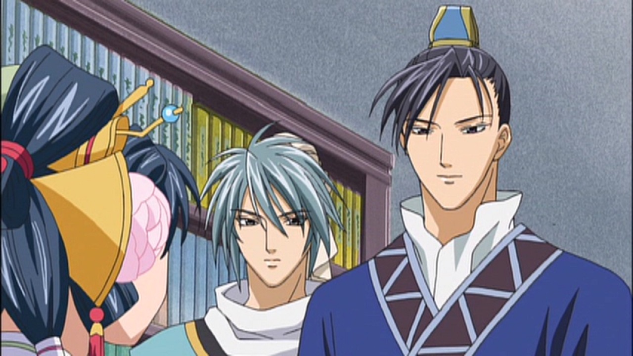 The episode opens with a narrator telling the story of how the country of Saiunkoku came to be. The legend begins with a man named Gen Sou fighting against evil creatures spread all across the land. 8 enlightened beings with mysterious powers saw his efforts and came to his aid. Together they helped Gen Sou defeat the evil demons. After the battle was over, Gen Sou became the first ruler of the country he created: Saiunkoku, The Land of Coloured Clouds. When Gen Sou died the 8 mystical beings departed, but rumors persisted that they still lived amongst the people of Saiunkoku, which would make them immortal. (Remember this for later.)