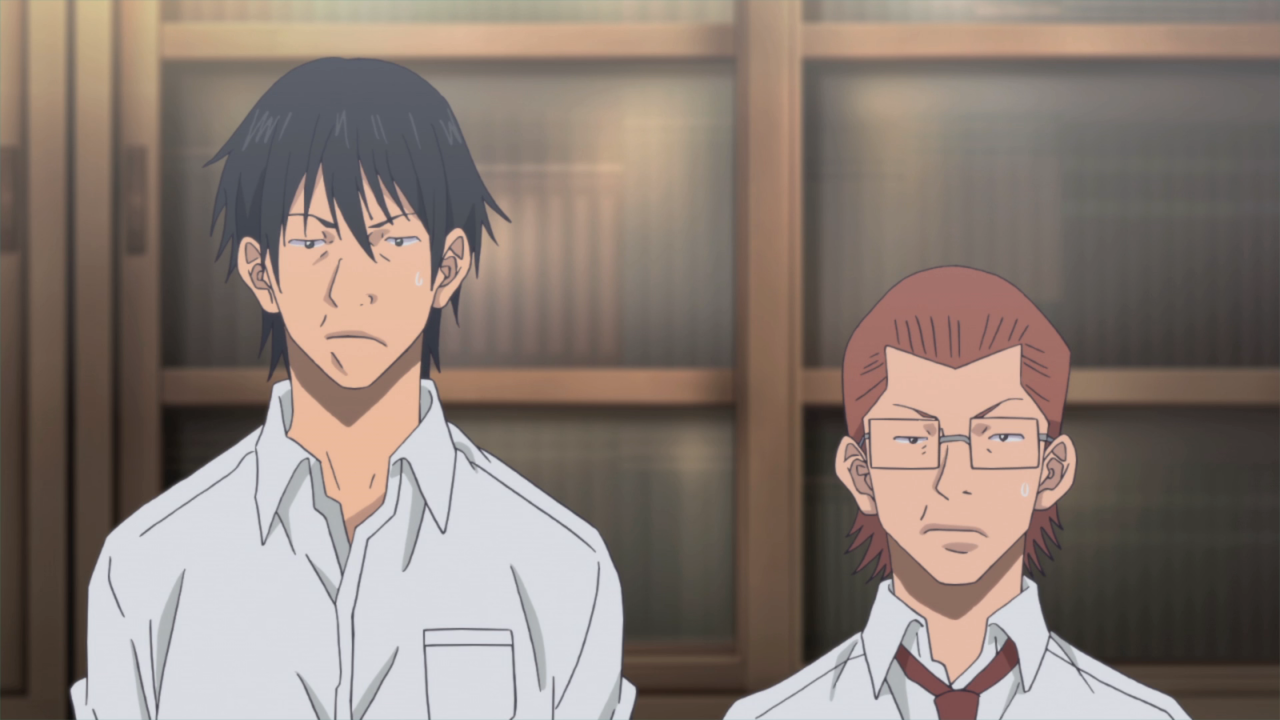 I enjoyed the transition between Madoka to Momoharu as well, which is interesting considering they probably have the most tension out of everyone. Madoka is understandably still going through a lot of emotions not only from what’s happened with Yuka, but also her passion for Basketball and the realization that she’s falling behind in her peers in living out the high school years. She seems very distant throughout most of her screen time, but I did like that they spoke about the mandatory club requirement that the school has – personally, I can’t remember if that was talked about previously, but it makes sense about the requirement considering even the delinquents had their own “club” at the start of the series. I liked the switch to Sora and Nao talking about how Momoharu approaching Mr. Satsuki was something that he needed to face, he feels an incredible amount of guilt, and quite frankly he has a lot of work to prove that he’s trying to improve. It’s been really fun to watch him grow as a character, he was pretty prideful early on (albeit not as much as some others), but seeing publicly get down on his hands and knees to ask Satsuki to be their advisor again was pretty intense. Like the others, he’s really putting in his all to restart the team. Despite that not… being the most successful attempt I’m glad that it led to the conversation between Satsuki and the Principal, primarily because I liked hearing the reasoning for requiring all students to join a club and ultimately how reflects in Sora and the others. It made me smile when he ultimately confronted the team, talking about how they’ve all grown as people or how important this team was, so I’m glad that they’re getting a second shot… despite Nabe giving them… potentially the worse chance at a second shot while accepting a match. But that’s okay! Overcoming impossible odds is always fun – it’ll push them to their limit and give them the chance to prove themselves!
