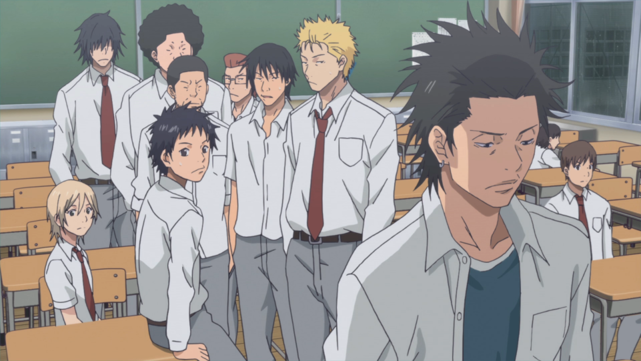 I enjoyed the transition between Madoka to Momoharu as well, which is interesting considering they probably have the most tension out of everyone. Madoka is understandably still going through a lot of emotions not only from what’s happened with Yuka, but also her passion for Basketball and the realization that she’s falling behind in her peers in living out the high school years. She seems very distant throughout most of her screen time, but I did like that they spoke about the mandatory club requirement that the school has – personally, I can’t remember if that was talked about previously, but it makes sense about the requirement considering even the delinquents had their own “club” at the start of the series. I liked the switch to Sora and Nao talking about how Momoharu approaching Mr. Satsuki was something that he needed to face, he feels an incredible amount of guilt, and quite frankly he has a lot of work to prove that he’s trying to improve. It’s been really fun to watch him grow as a character, he was pretty prideful early on (albeit not as much as some others), but seeing publicly get down on his hands and knees to ask Satsuki to be their advisor again was pretty intense. Like the others, he’s really putting in his all to restart the team. Despite that not… being the most successful attempt I’m glad that it led to the conversation between Satsuki and the Principal, primarily because I liked hearing the reasoning for requiring all students to join a club and ultimately how reflects in Sora and the others. It made me smile when he ultimately confronted the team, talking about how they’ve all grown as people or how important this team was, so I’m glad that they’re getting a second shot… despite Nabe giving them… potentially the worse chance at a second shot while accepting a match. But that’s okay! Overcoming impossible odds is always fun – it’ll push them to their limit and give them the chance to prove themselves!