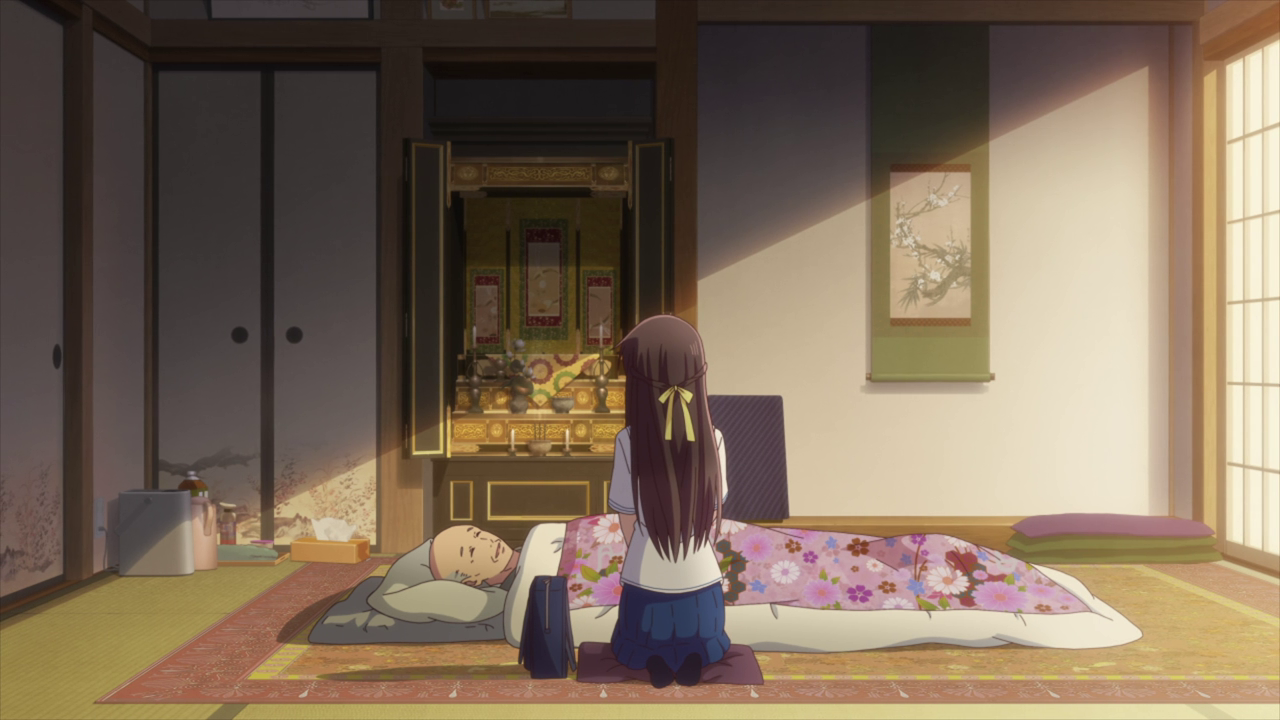 We also get some Tohru development. We get some major hints as to what pushes her to be so upbeat and smiling all the time. Along with her overwhelming fear of losing people close to her. Shown by her anxiety when her grandfather seemed like he was going to pass away, but ended up just falling asleep and her nearly having an emotional breakdown when she thought back to a time when her mom left her behind at home. I also think it’s very telling that Kyo appear while she was thinking about all of this. It’s a very complicated scenario. On one hand, Kyo actually came back for her, implying that he won’t leave her behind. But then on the other, he’s essentially the next person to “leave” her since he’s going to be locked away forever. A double-whammy on opposite ends of the spectrum.