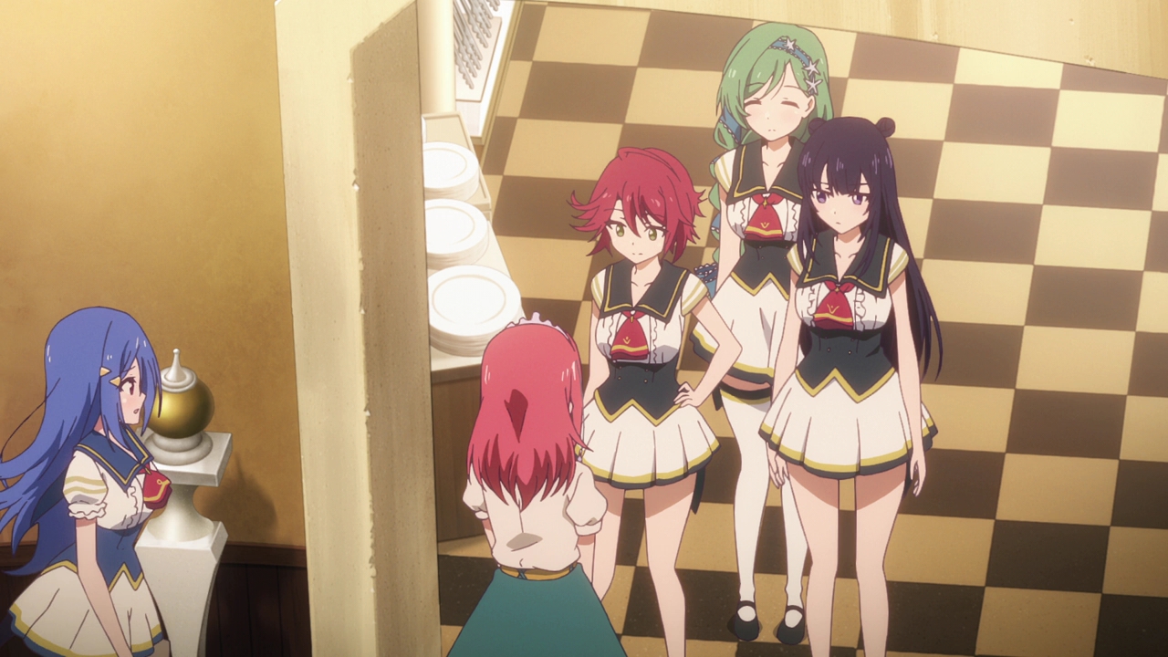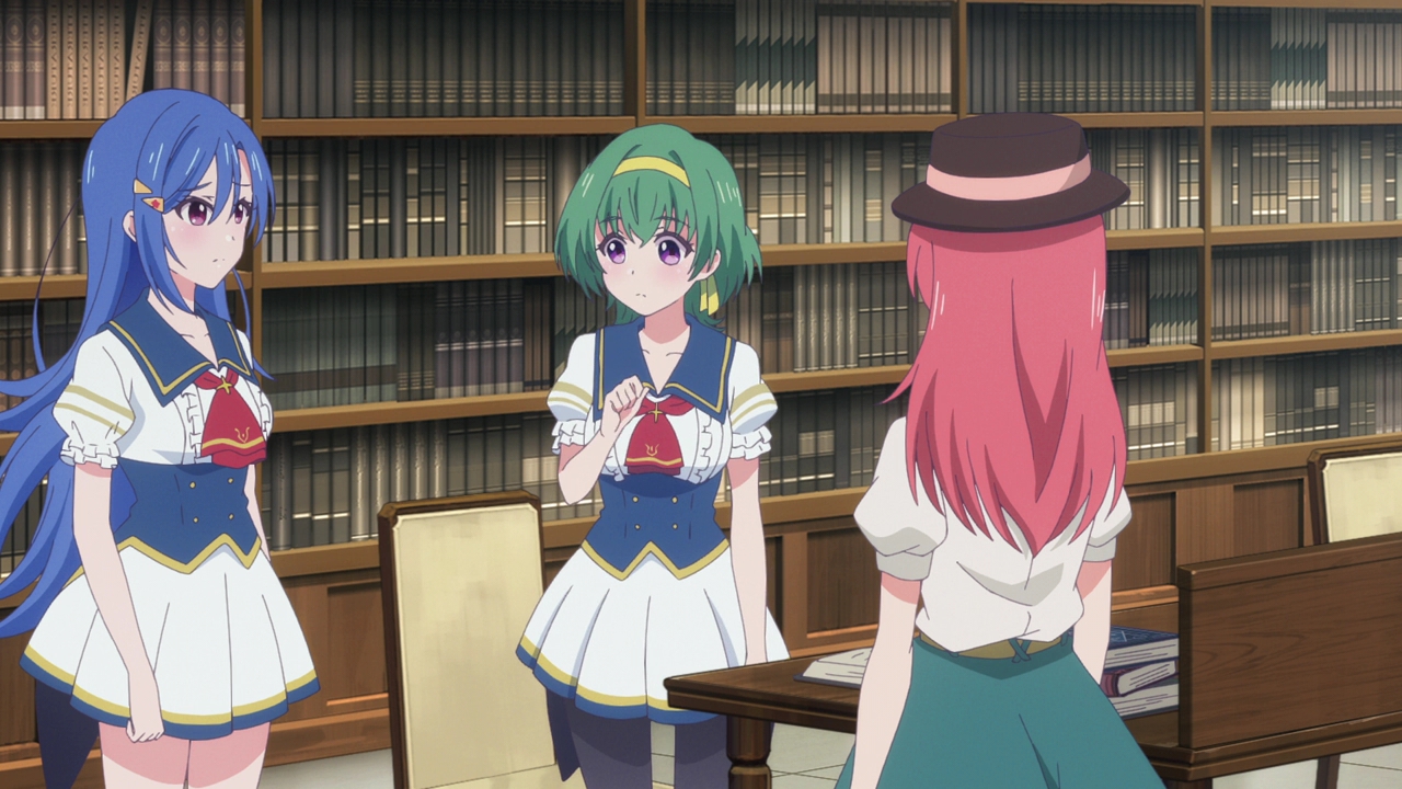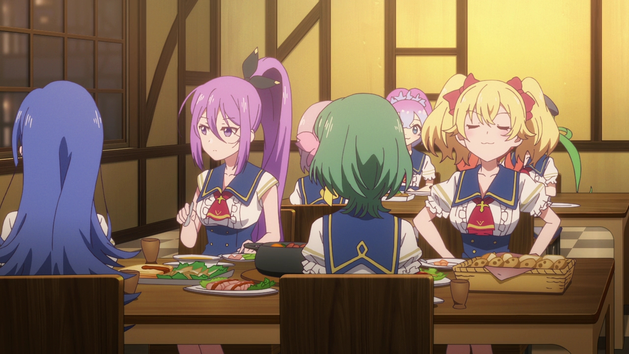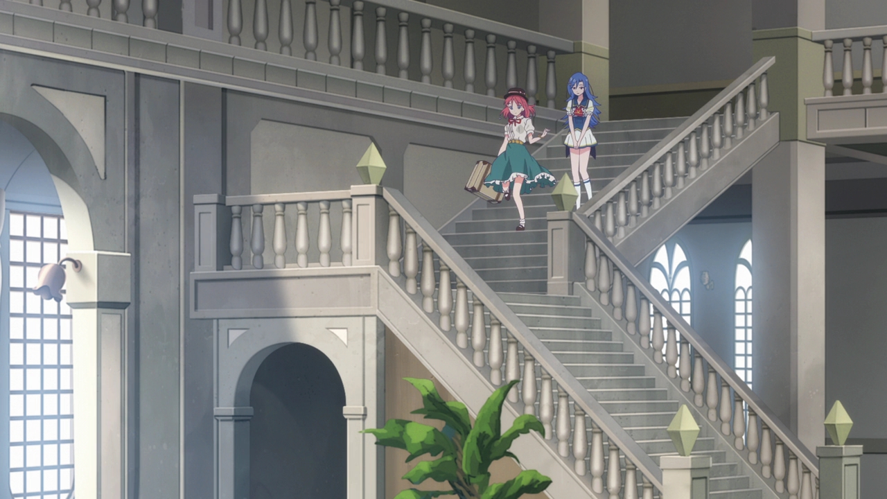 The anime’s first episode can be condensed to a single sentence: Tiara gets a tour around the school and meets her group. That’s basically the only thing that happened this episode, however we were able to also see quite a bit of the school and their activities, classes, and how the magic works. Knowing this was going to be a music show with some fantasy elements, I kind of went into this expecting something like Revue Starlight. But in all honesty, this feels way more like Little Witch Academia than anything else. In fact, what with learning a tiny bit about the world and the school, I’m not exactly sure what the future idol stuff will have to do with anything?