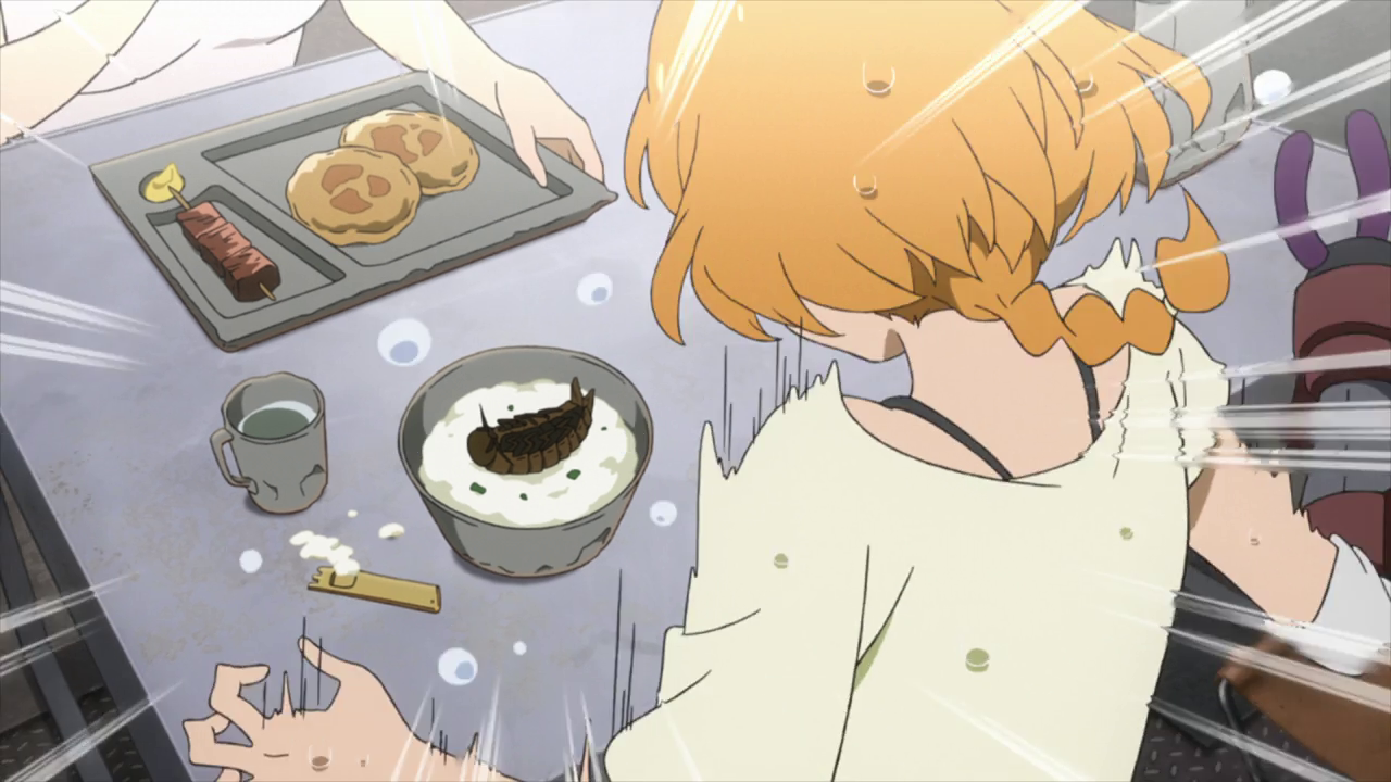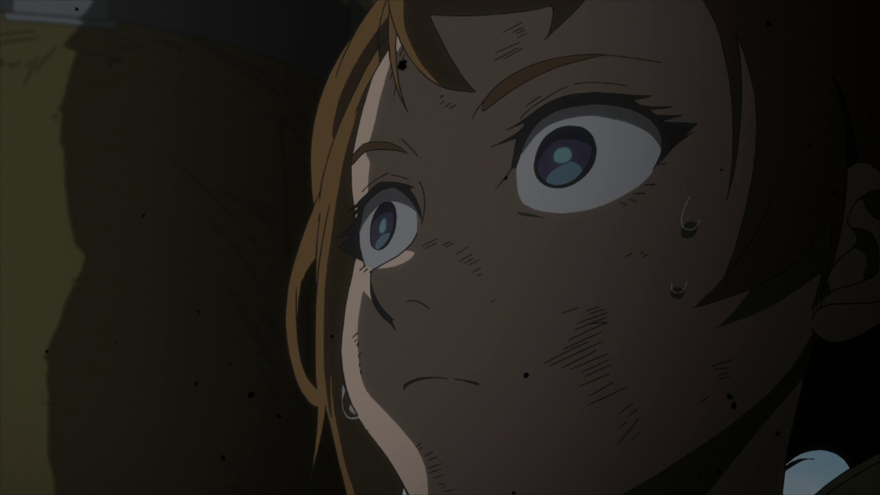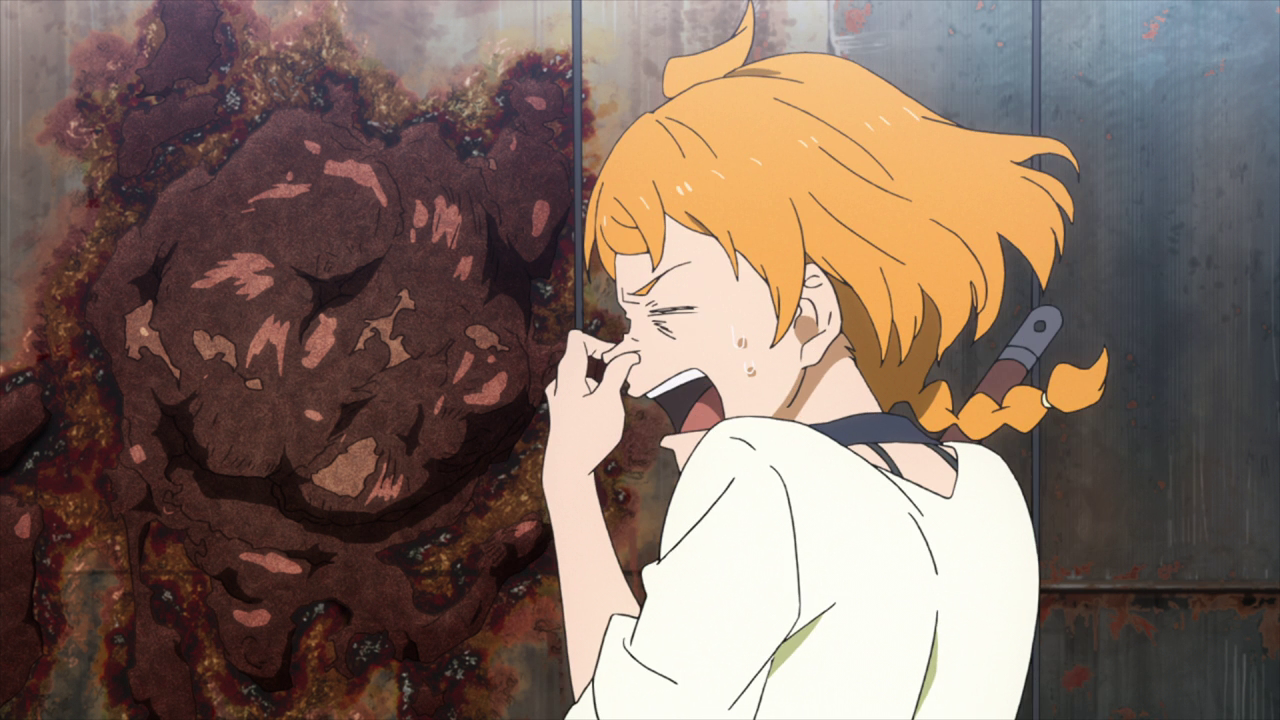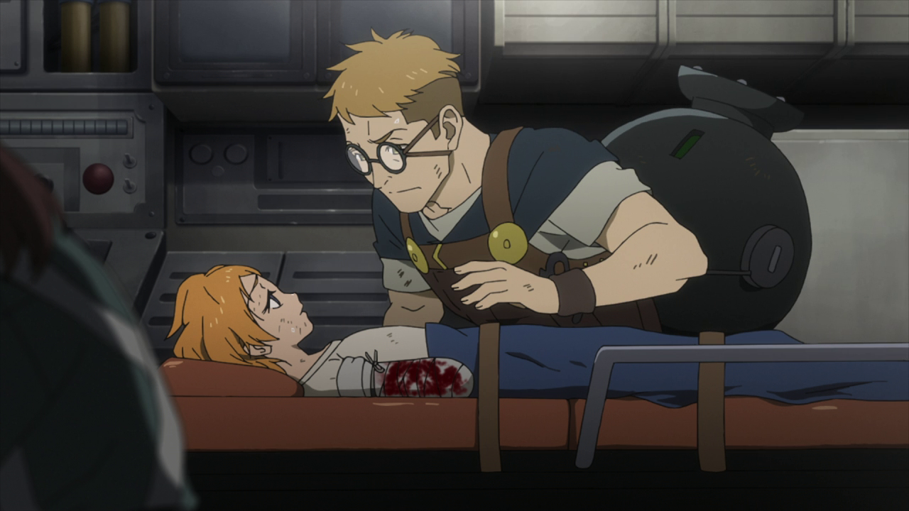 There was a lot of world building through out this first episode and I do appreciate that they took the time to try and show us what goes on in this post-apocalyptic world. I feel like people tend not to like slow first episodes, but I rather enjoyed this one. It kind of gives us time to get a feel for the world along with how the characters interact with the environment. I already really like Natsume as a character. She’s just so full of energy and life despite this world being super dreary and desolate. Especially since I can only guess she’s now an orphan after her dad died in the first few minutes of the episode. As soon as that man said he would make it back home, I knew this guy wasn’t going to make it. Natsume is a tanker who wants to be a Gear but is reduced to armor repair er cleaner to be more exact in what she actually ends up doing. At first I thought she had given up on her dream to be a Gear, but with how things played out in the episode, I’m sure she’s going to be heading in the direction of her initial dream and show everyone that she can do it. Which is pretty cliche when I write it out like that, but we’ll see if this series can make it convincing and make me want to root for her in that way.