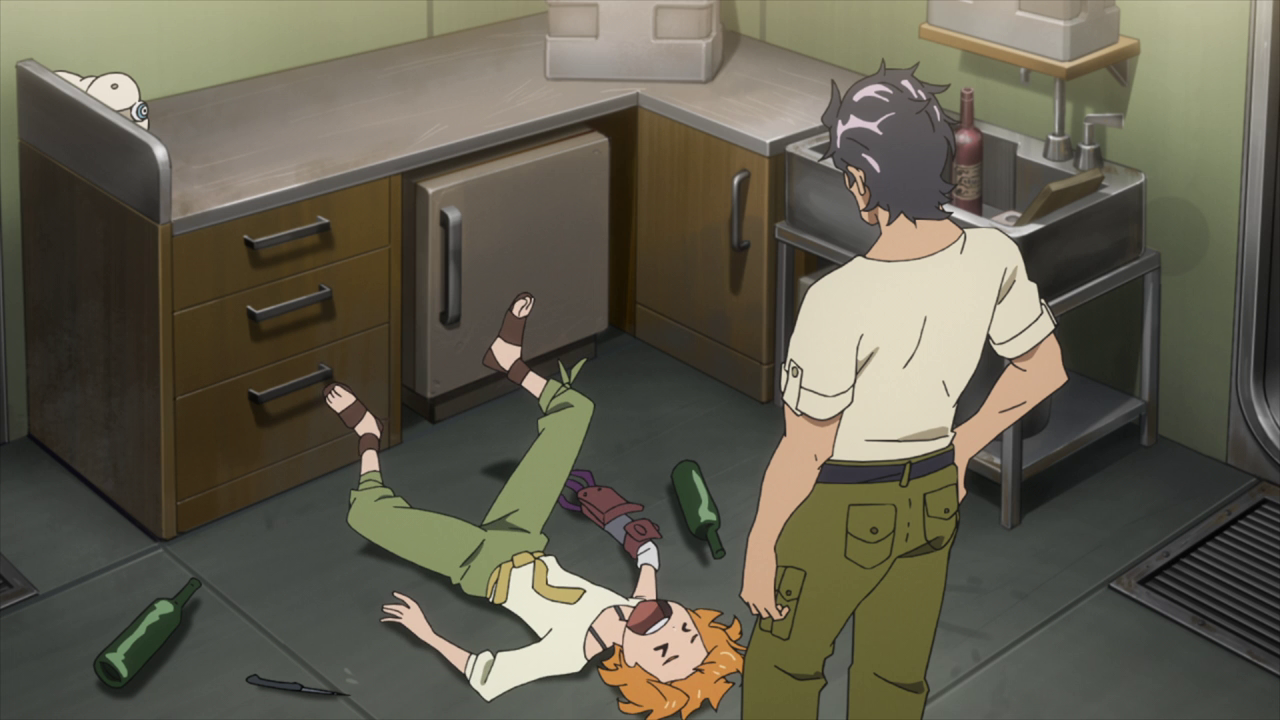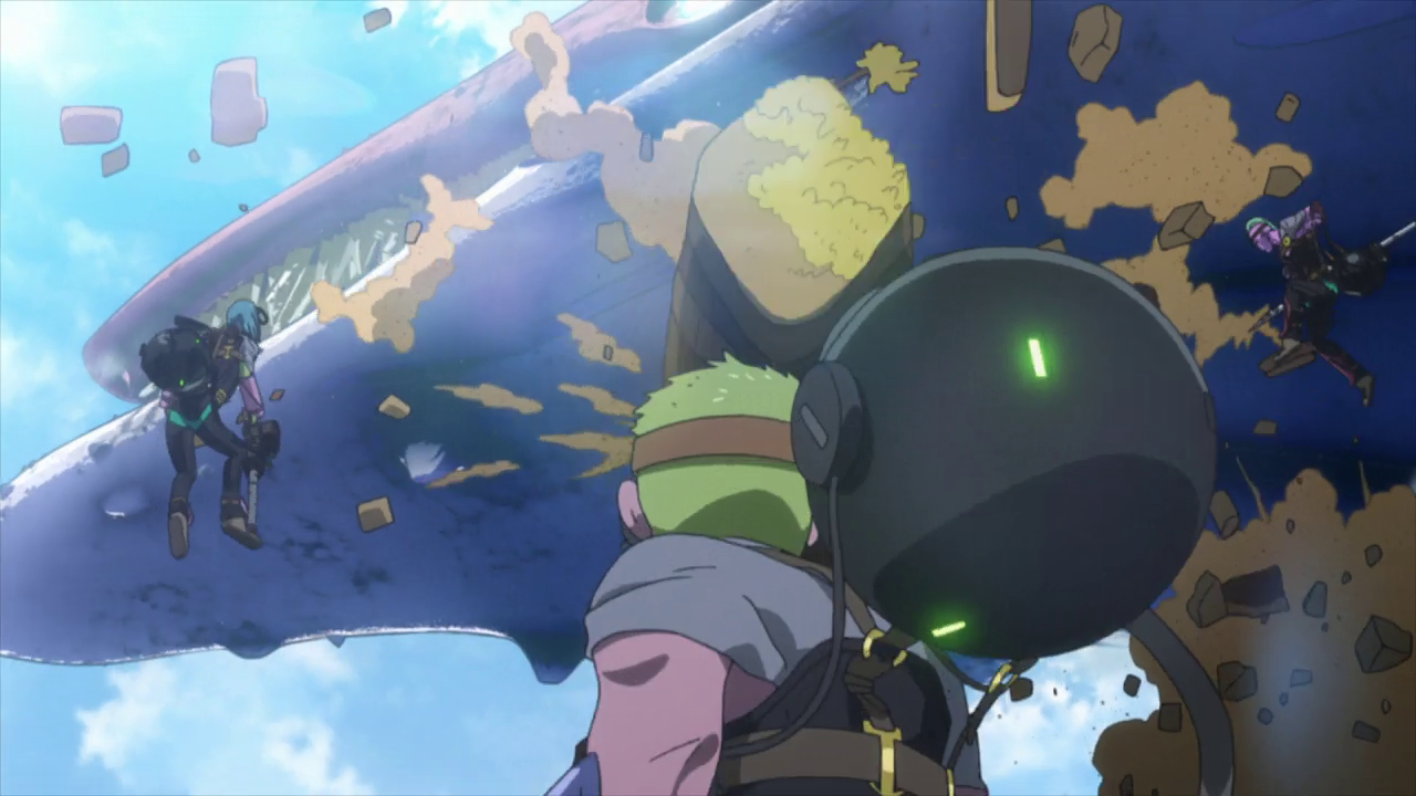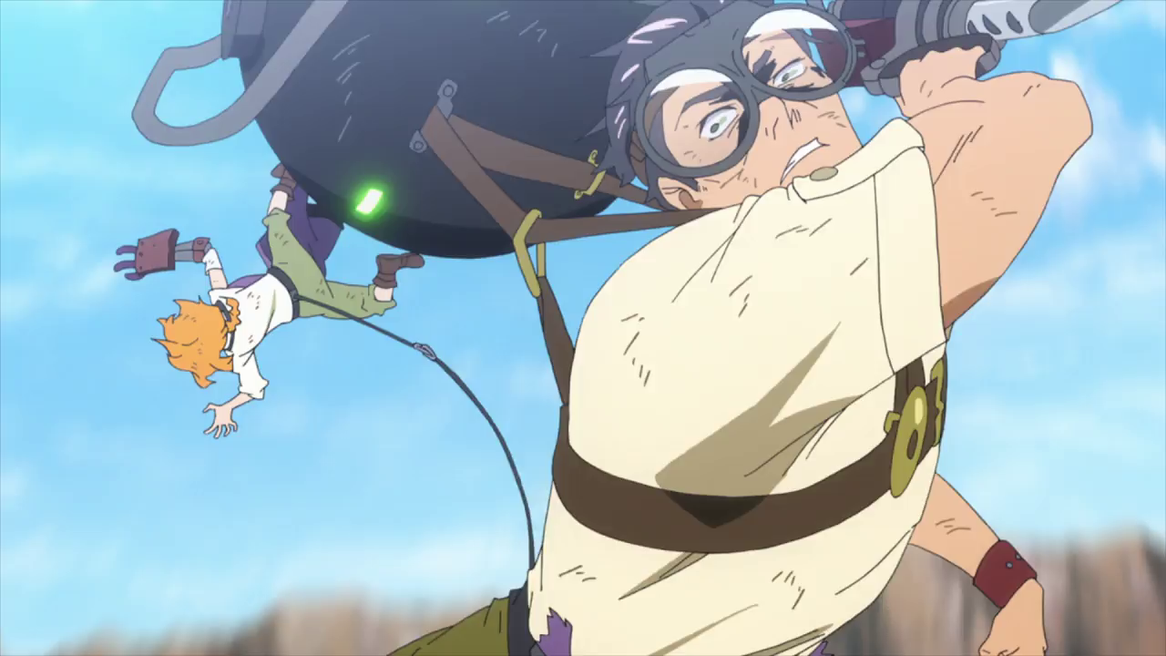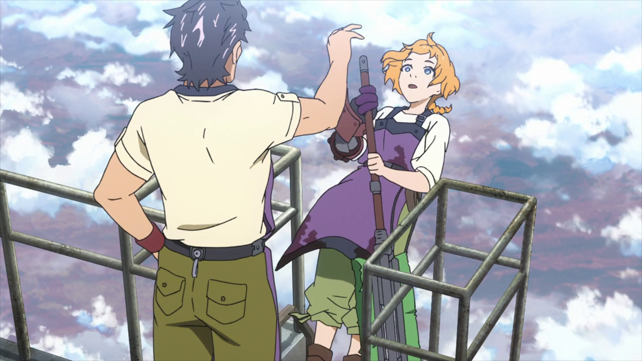 So far, I’m really liking the art and animation style. It all seems so clean to me and the movements of the floating technology was very well depicted and animated. The cinematography was great and the action sequence was just overall really fun to watch. Not to mention I have to give kudos to Kaburagi to maneuver through all the chaos while also dragging Natsume along and keeping both of them from getting hurt. That was some pure skill right there. Also the backgrounds are just gorgeous, even if most of them are desolate desert lands. STILL, that shot of them sitting above the clouds was a beautiful and just showcased how big this world was despite humans being holed up in this moving fortress.