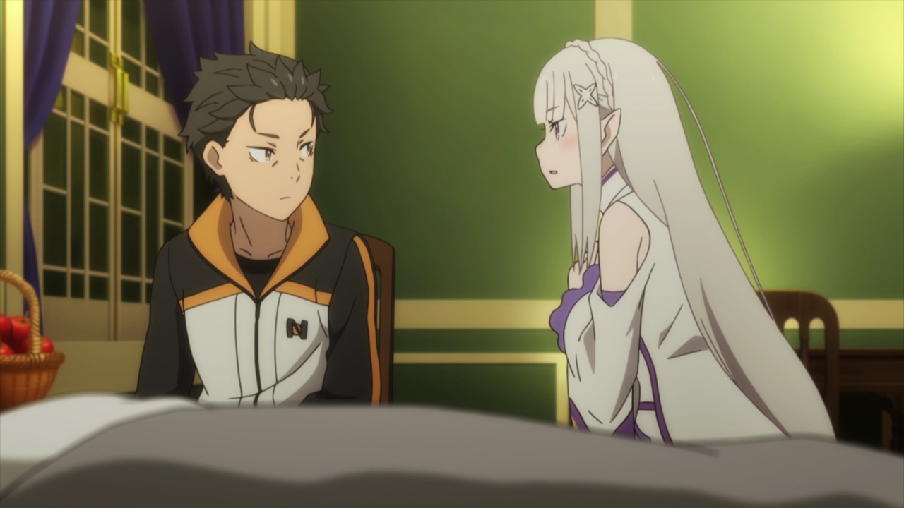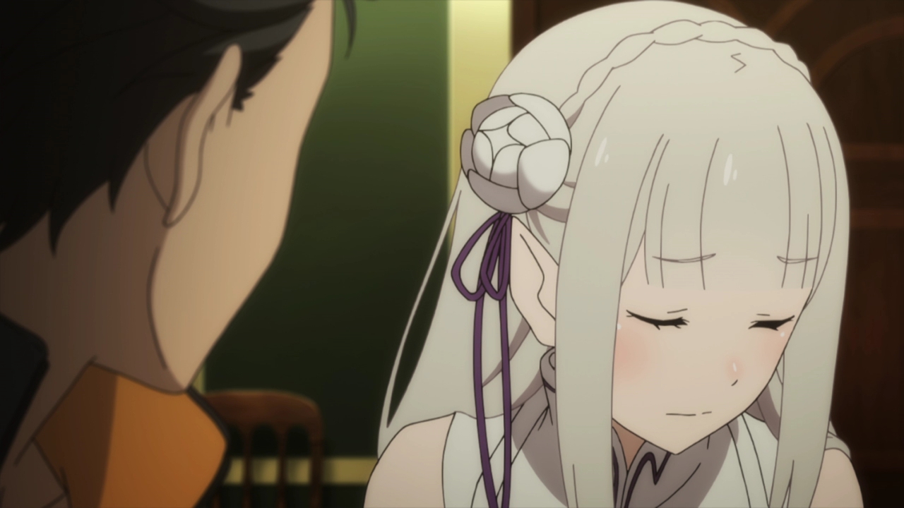 Subaru’s grown a lot with all the events from the first season, and I always feel for him whenever things like this happen and he feels responsible. He has a fantastic bond with Rem, and while I don’t ship them (gasp!) my heart weeps for poor Rem. She’s also been through so much so I just want her to be safe for once dammit! I love Rem, I really do. And then there’s Emilia, and her scenes with Subaru are always some of my favorites. They’ve had ups and downs but their relationship is so strong and the way Emilia shows her support is so important for him considering all the horrible trauma he’s faced, most of which she doesn’t even know about. Emilia doesn’t quite know just how important she is to Subaru. She’s his bright light in a dark, horrid world and she’s someone he can always come back to. Not to say Rem and the others aren’t just as important, but there’s a reason why he loves Emilia so much. She’s simply a kind and beautiful person, who’s friendly and caring nature is warm and healing. She’s honest, and while she doesn’t remember who Rem is, she wants to do anything she can to help her because that’s just who she is. She also can see that Rem is important to Subaru and so she can’t turn a blind eye to this situation. Since he’s saved her, she wants to repay him and save him too. And that just…!!!!! Emilia is wonderful, I love her so much. I just needed to say all that and fangirl a little bit. I love her and her relationship with Subaru, it’s fantastic.