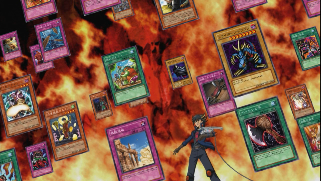 He knew the Chief was cheating, so he switched around his cards on the field and hid the one that would be the key to victory up his sleeve! I mean, how many times we have seen protagonists go on about the importance of upholding the “integrity of a duelist”, even against opponents who don’t respect that? But with his life at stake, Yusei recognized that kind of mentality was not going lead him to victory. So he did what needed to be done to ensure the Chief lost his advantage, but exploit the fact the guy was banking on the information he was fed before the blackout. But it could also be argued that the only reason why he was able to make the comeback in the first place was because he had the opportunity to do the switch. Had Aoyama not intervened by triggering a blackout, it seems likely with the way things were going, Yusei could have very well lost the duel. After-all, had he not switched the cards, he was more or less screwed since the Chief attacked what he had thought to be Battle Mania only to discover it wasn’t, and Yusei was able to use it against him to set the stage for the comeback.