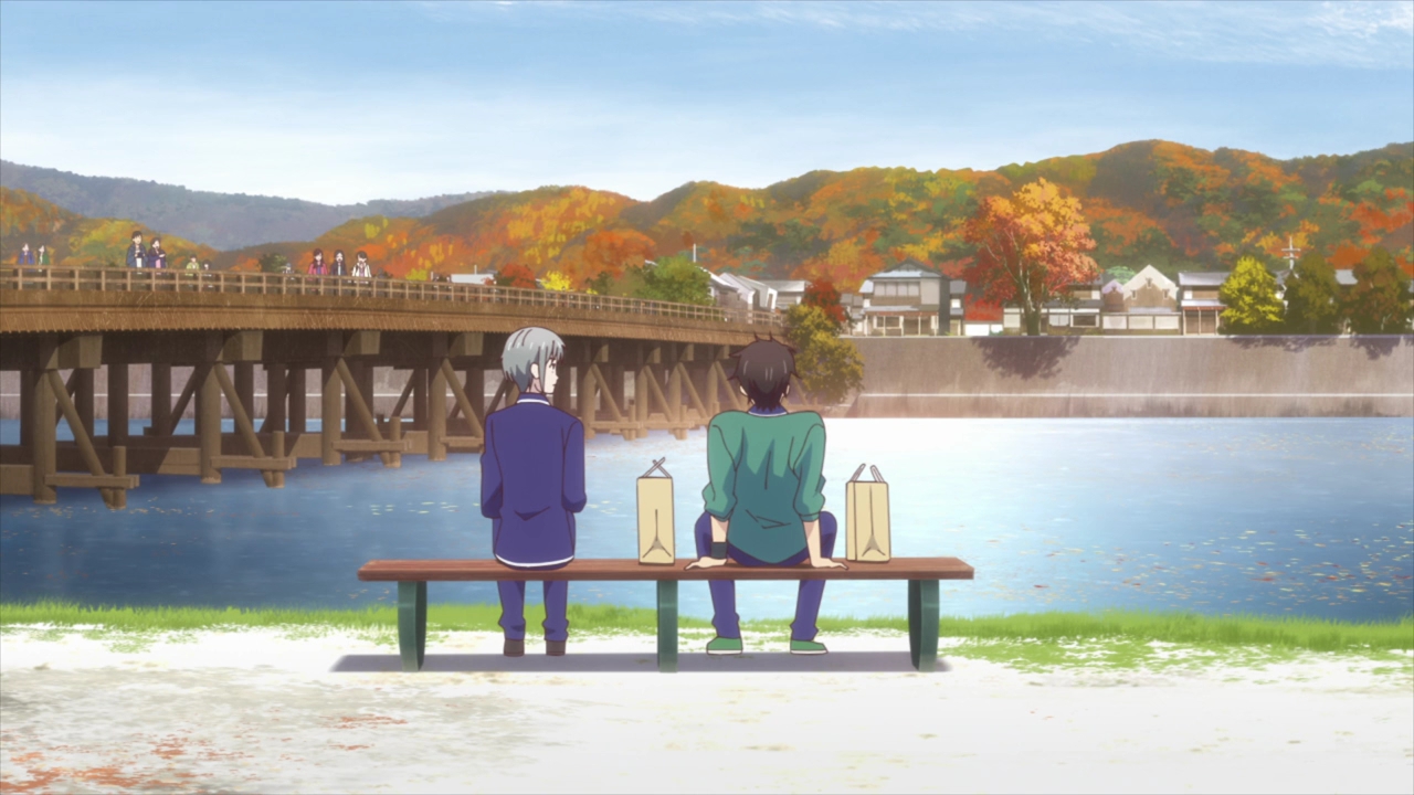 It’s the school trip to Kyoto, and that means lots of walking, souvenir shopping, lots of eating, and of course romance and confessions. Because I guess without teachers around, this is the time to confess and get together? I don’t know. We see our usual group hanging out together and taking pictures, but the episode was split into two with the first half mostly focusing on Kyo, and the second half on Yuki.
