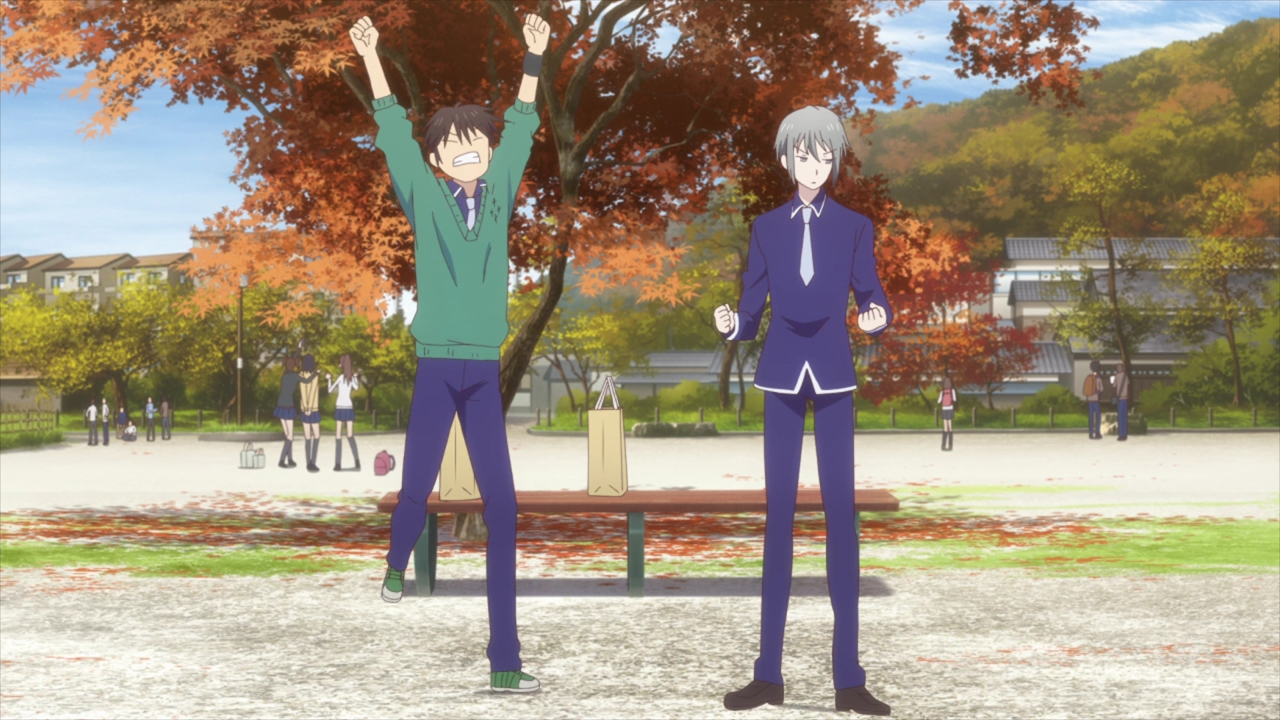 Going back to that pathetically childish “Then we’re not friends!” line, Kakeru brings up Tohru again and asking Yuki how he’d feel if he suddenly confessed to her. Ever since his scene with Tohru on the beach, it looks like he’s stepped back from her romantically but still very much cares for her and holds her dear, so much so that he’s very protective of her. He won’t forgive anyone that’ll hurt her. He directs that towards Kakeru if he ever tries to date her as a joke, but he also directs this to Kyo interestingly. This could maybe refer to how dismissive Kyo was towards Tohru earlier, but this could just be in general. Yuki basically accepts and knows that Kyo loves Tohru and this boy here just wants Kyo to treat her right like she deserves. Tohru is just too important to him so she deserves the best. He’s keeping an eye on you, Kyo.