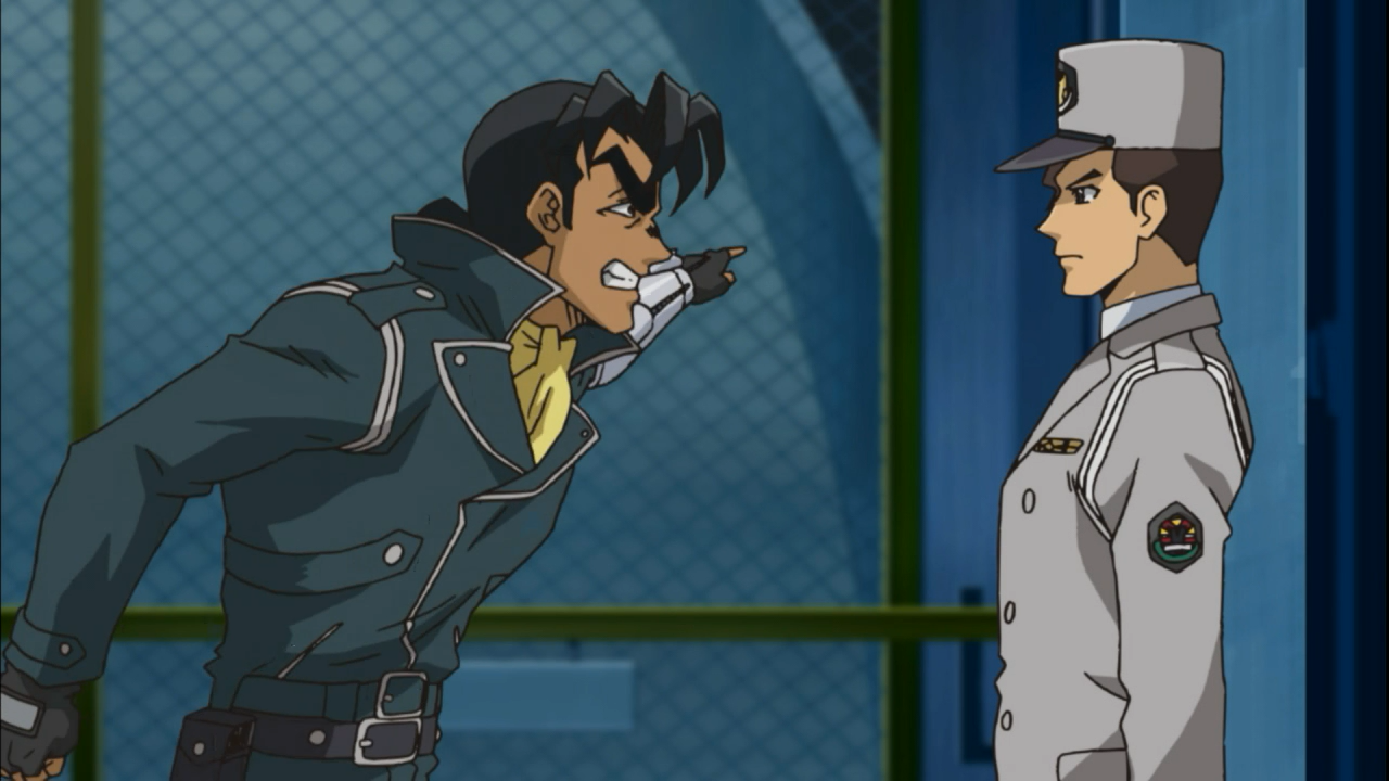 It is an understatement to say Yusei was incredibly fortunate to have been taken in by Lua and Luca because the kids live in the Tops, which is the wealthiest area in Neo Domino. It can certainly be one of the safer areas for a fugitive to hunker down in, so as long as the Top’s security doesn’t catch the wind of them because not even officers like Ushio are permitted to enter. However it does come with the problem of being completely surrounded or at least being coherence into taking a certain path just as we saw in last week’s episode. Sure enough, with Ushio being the pro at stake-outs (and quite possibly with the active marker signal), he was able to quickly catch up to Yusei. Unfortunately for him, he was denied pursuing him any further due to Godwin’s orders and Yusei is now a participant for the Fortune Cup, which brings us to the next plot-point!