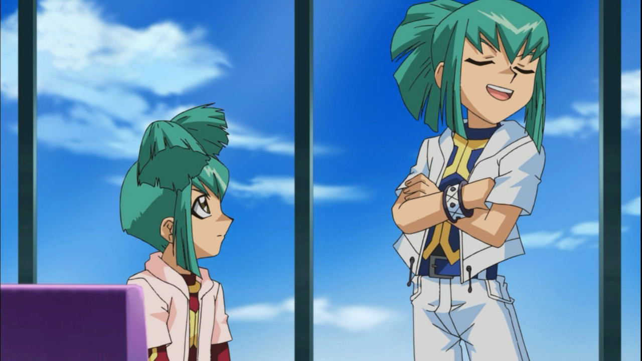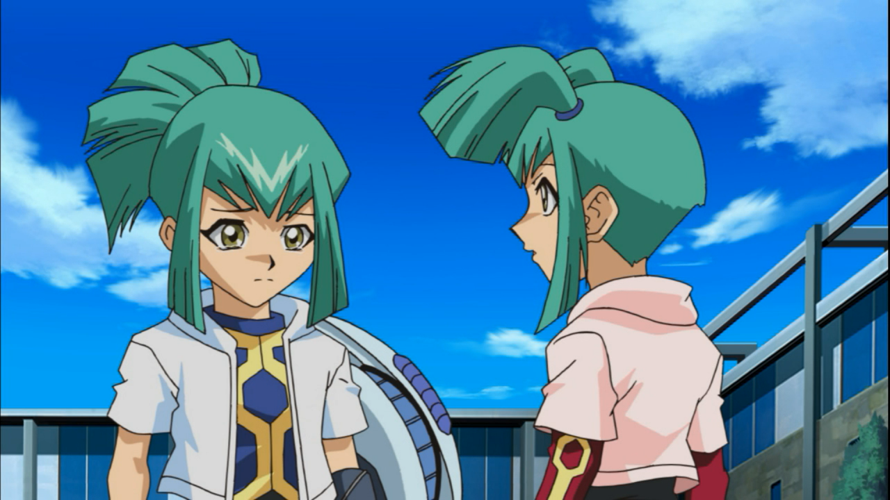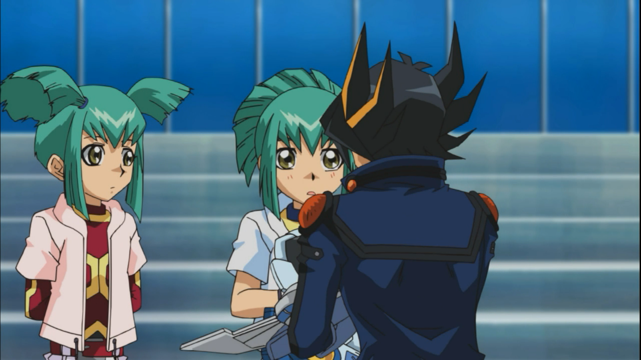 Earlier in the episode we learned about Luca receiving the invitation to participate in the Fortune Cup. As soon as Lua mentioned it was randomized selection I knew it was bullshit. It was obvious from the start this tournament was Godwin’s doing, because what better way to search for the Signers than rounding up a bunch of potential candidates? Luca’s invitation in particular was also suspicious given we had learned she is able to communicate with the spirits of the cards. There was also the fact she was also able to sense Yusei’s plight, which is how they found him unconscious in front of their building in the first place. That being said, although Godwin sent Luca the invite, she has no interest in particpating so since they are twins, Lua is hoping he can participate in her steed. That would certainly be a great way to troll Godwin, so as long as he isn’t a Signer.
