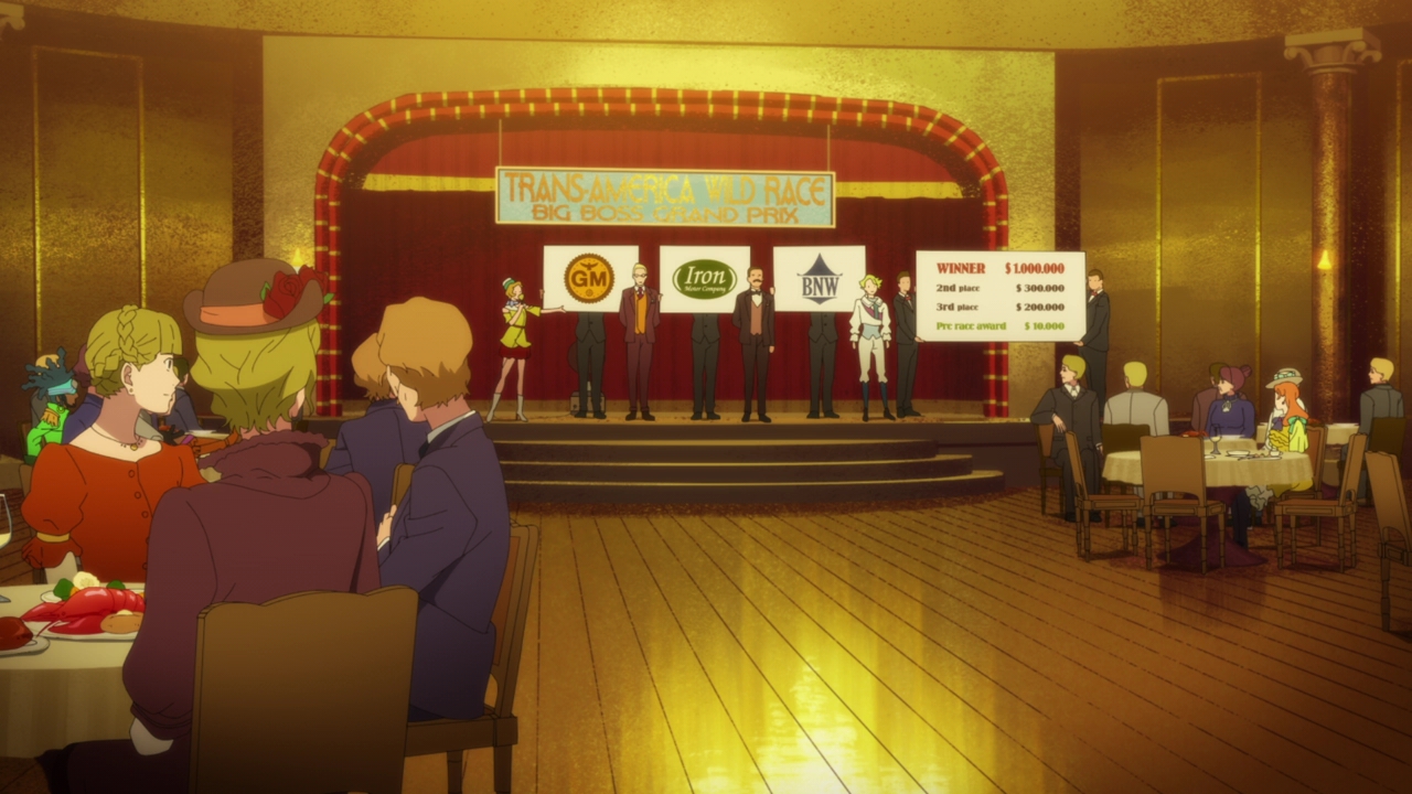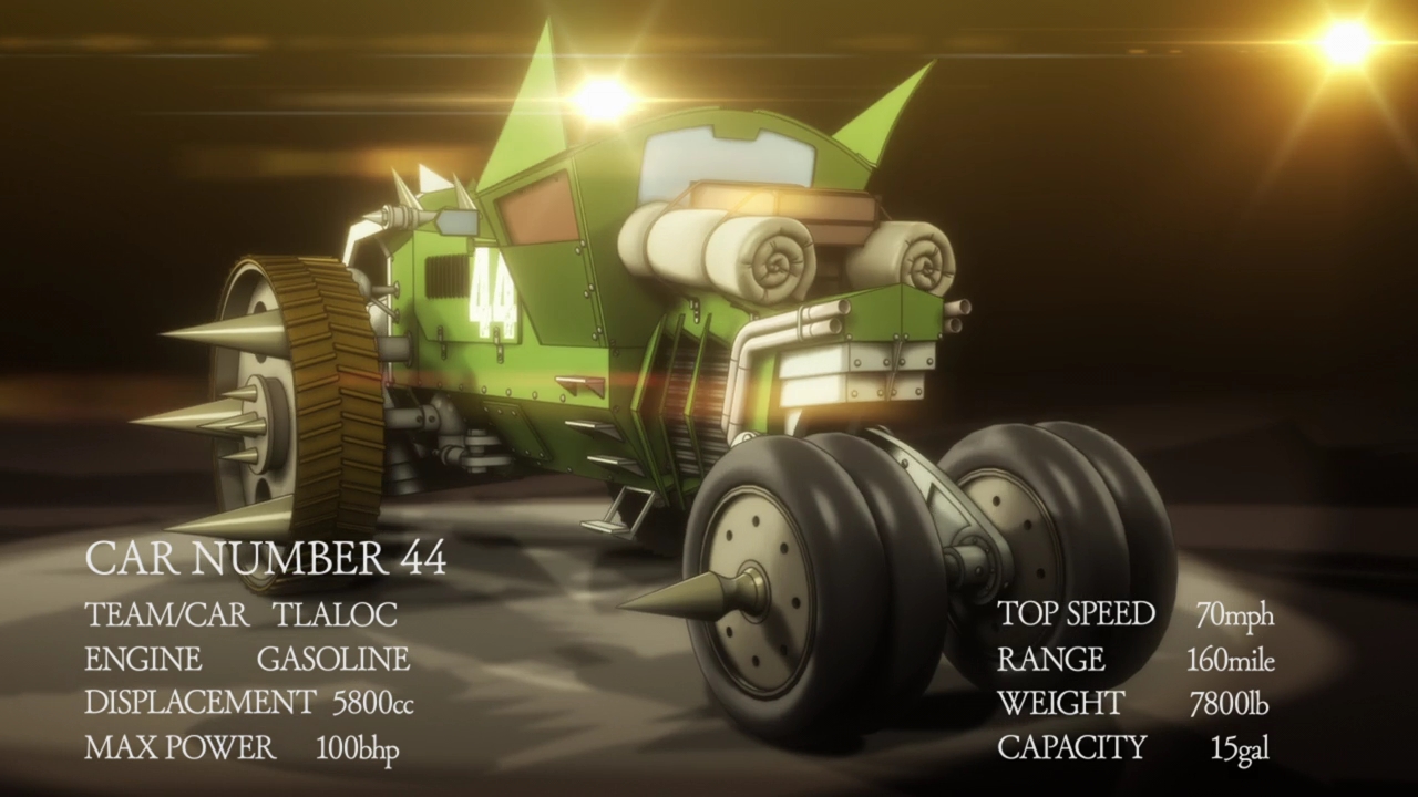 This episode was pretty simple but very crazy. I love the presentation of this anime as the woman announced the racers and their cars, really making it feel like a real race. The characters are just really goofy and so are the things that happen randomly and it’s great. This was a nice lead-in to the race, where we ended on the first scene we saw in the first episode. One thing, however, is that it looks like there’s going to be some corruption from the higher ups since they say the race is going to end in “tragedy”. I’m guessing the companies funding the race just want to show off their brand-new cars so people will want to buy them, but they’ll tamper with the race so they don’t have to give away the prize money. You know, just typical corrupt corporation stuff. Probably why some of these companies brought in literal criminals and outlaws into this mess. 😐