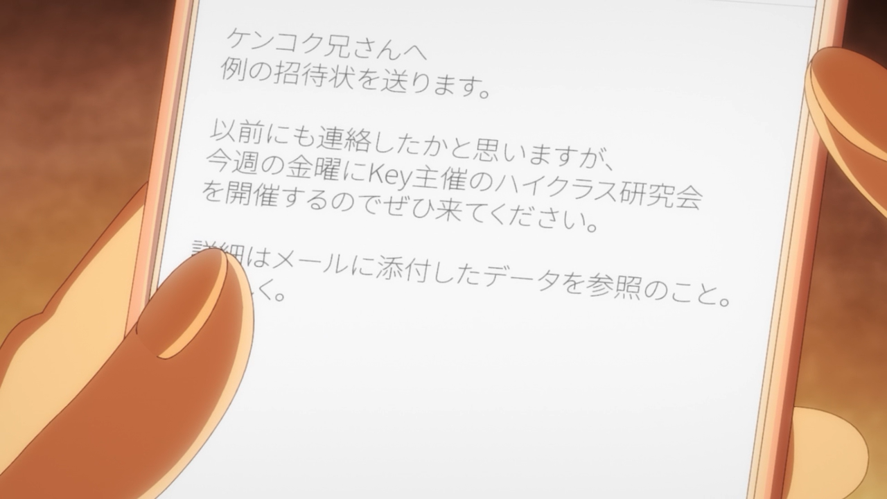 Today we learned about a hero of justice, Key: a legendary hacker who was responsible for uncovering the genetic research incident from 17 years ago. He was the one who leaked all of the information which led to the Heroine’s father to investigate in the first place. This all came about when the heroine’s high-school classmate (Minor) came in hoping he could land a job by suggesting they interview Key for their program (ya crazy dude? What makes you think he would do it?!) She later gets this email about Key hosting this Hacker Seminar which might as well have “THIS IS A TRAP” stamped on it. It was super sketchy. And sure enough, it was because Black Swan was behind it.