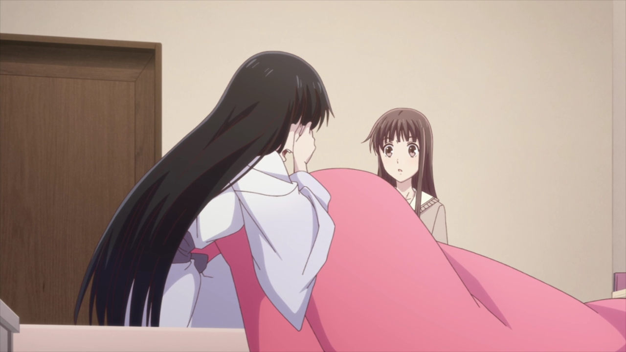 Because Tohru is not well, and that ending was depressing. I do want to say I love how she stood her ground with Rin in the beginning saying that she will meddle no matter what. Times like these Tohru really shows off her strength, but we know that she also has a weaker and vulnerable side that she tries so hard to keep at bay. I was expecting a big loving speech when it came to Rin, like Tohru has done so many times before. But no. All she said as she held Rin was “It’s scary to be on your own.” with tears strolling down her face and a short flashback to when she was a child. Tohru is dealing with her own trauma and hiding it herself, but as hard as she was ignoring it and hoping those terrible feelings would go away, it’s starting to break. Interesting that Shigure said something was breaking at the start, and I think he was referring to the curse, but that line could also be talking about Tohru’s mental health. She’s slowly breaking more and more and we’ve been seeing it a lot this season, but I feel like Tohru not being able to answer Rin’s question and that dream is the start to something big.