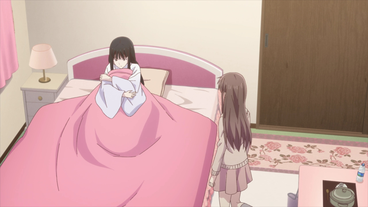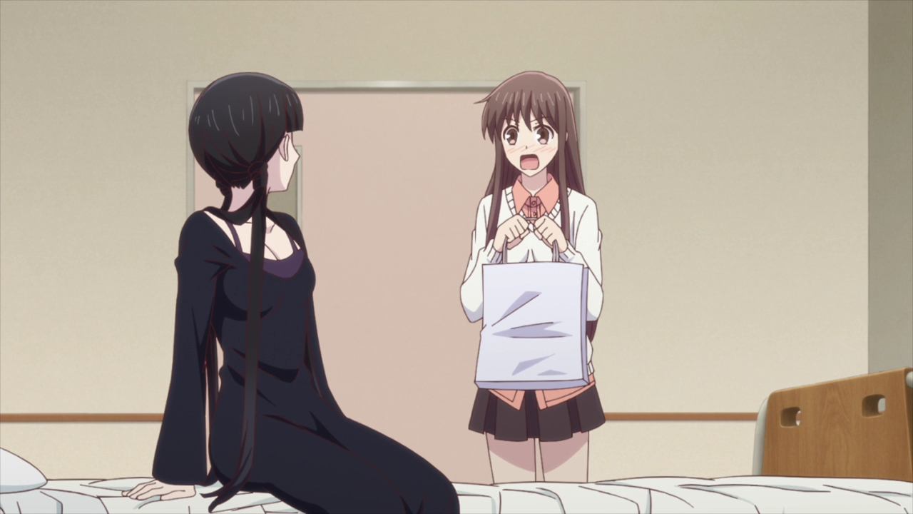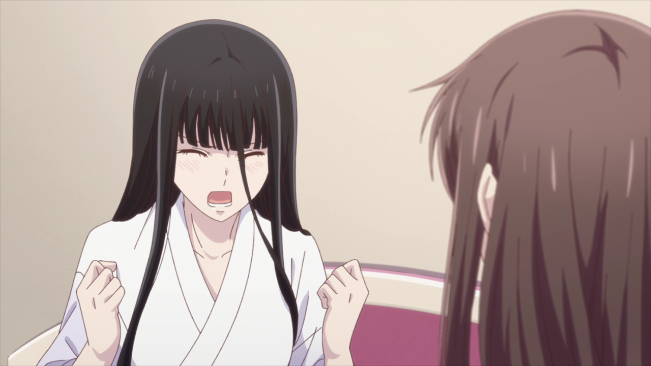 Even so, the first bit of the episode leading up to Rin and Tohru embracing made me emotional. It was just beautiful and it was also the first step to Rin’s recovery. It’s sad that the first time Rin saw Tohru, she had this reaction to run over to her and bury herself in her lap and vent out her feelings, and be comforted. She’s been so lonely that she yearns comforting attention, but deliberately sabotages these relationships because Rin doesn’t want to be involved with people as kind as Tohru and Haru. She doesn’t want to see kind people like them be taken advantage of and hurt in the process. But those feelings become too much when she collapses and finally reaches out to Tohru. I was afraid she was going to keep running away but I was so relieved when she accepted Tohru instead and let her true feelings out. She doesn’t know what to do anymore, but that doesn’t mean she needs to do this alone or be alone. Like Shigure said, you can let yourself be taken care of. What matters is what you do afterwards, and I like that we got that little focus on Yuki since he completely relates to that. And just like Yuki, I hope Rin can find the strength to change and better herself.