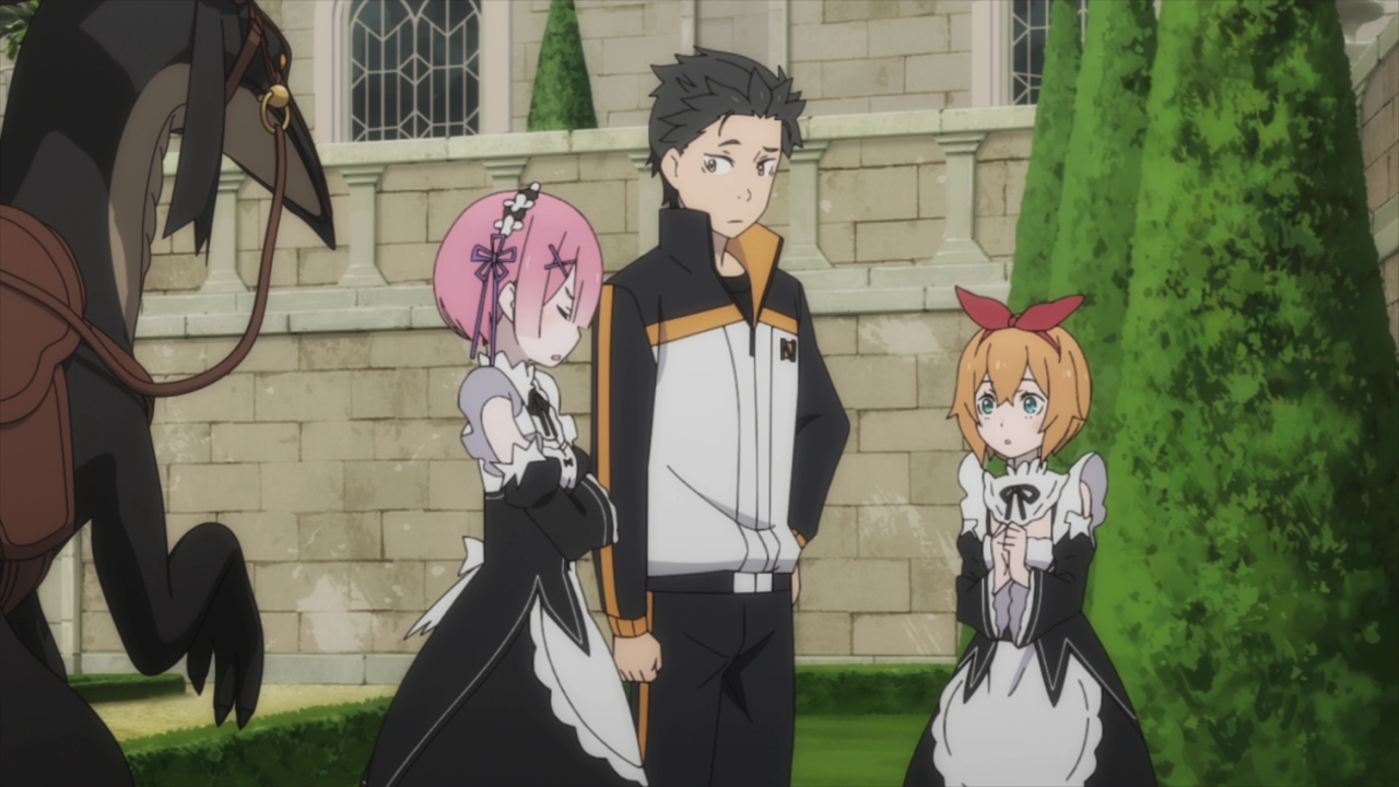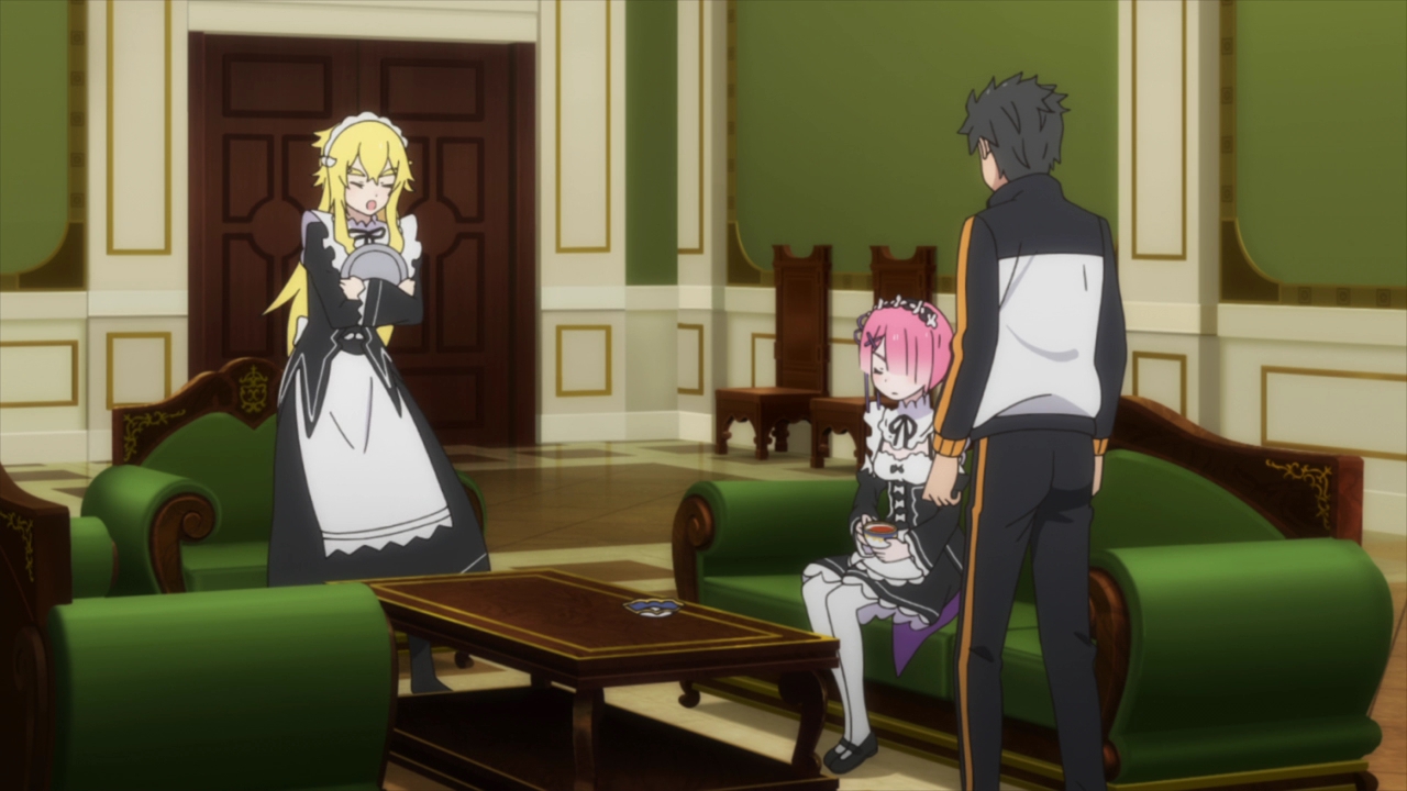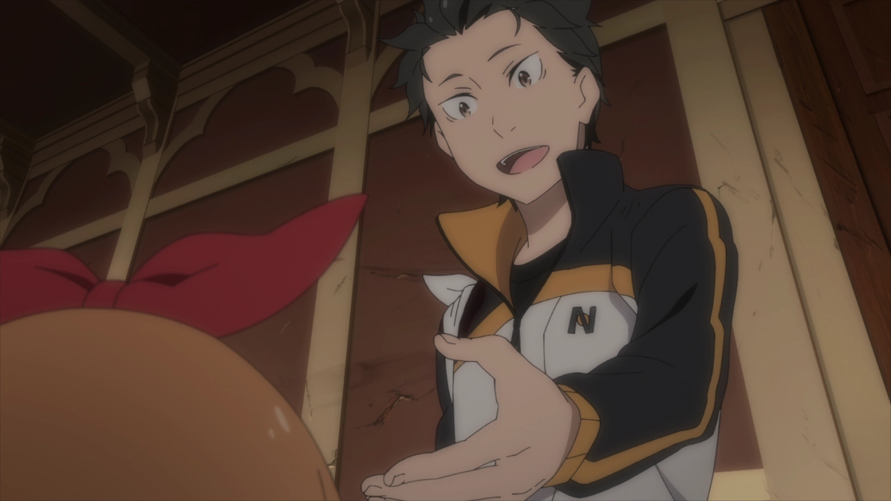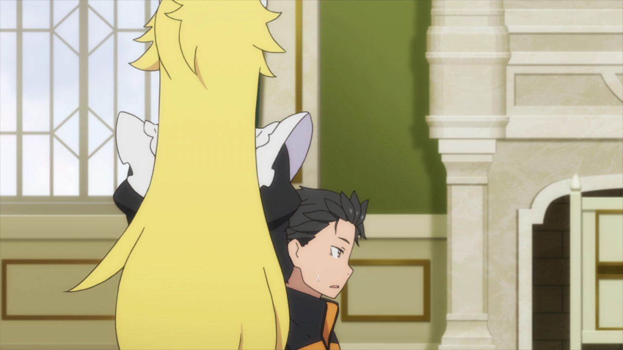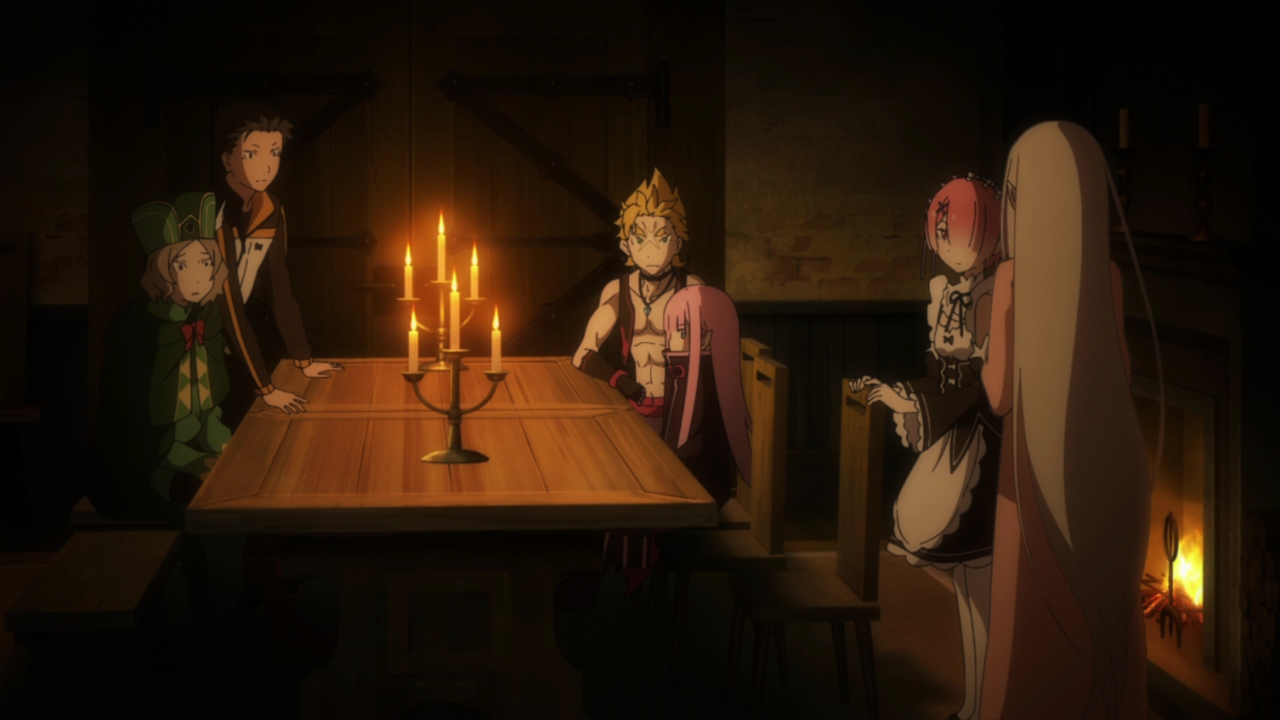 As I suspected, Subaru’s reset point is right after finishing his trial. He wakes up beside a scared Emilia just like before and things proceed a little differently. They all gather and Emilia comes in to talk about the trial, and Subaru kind of annoyed me here. We all know what he means when he told Emilia that he could take part in the trial for her. We know that he does trust her but he doesn’t want her to be in pain and not have to face it if she doesn’t want to. But Emilia rightfully took it as Subaru not believing in her to complete the trial, and it bothered me that Subaru didn’t even apologize for it. He tells Garfiel later to do it for him, and that he also left a letter, but c’mon man. You should know better than that by now. :/