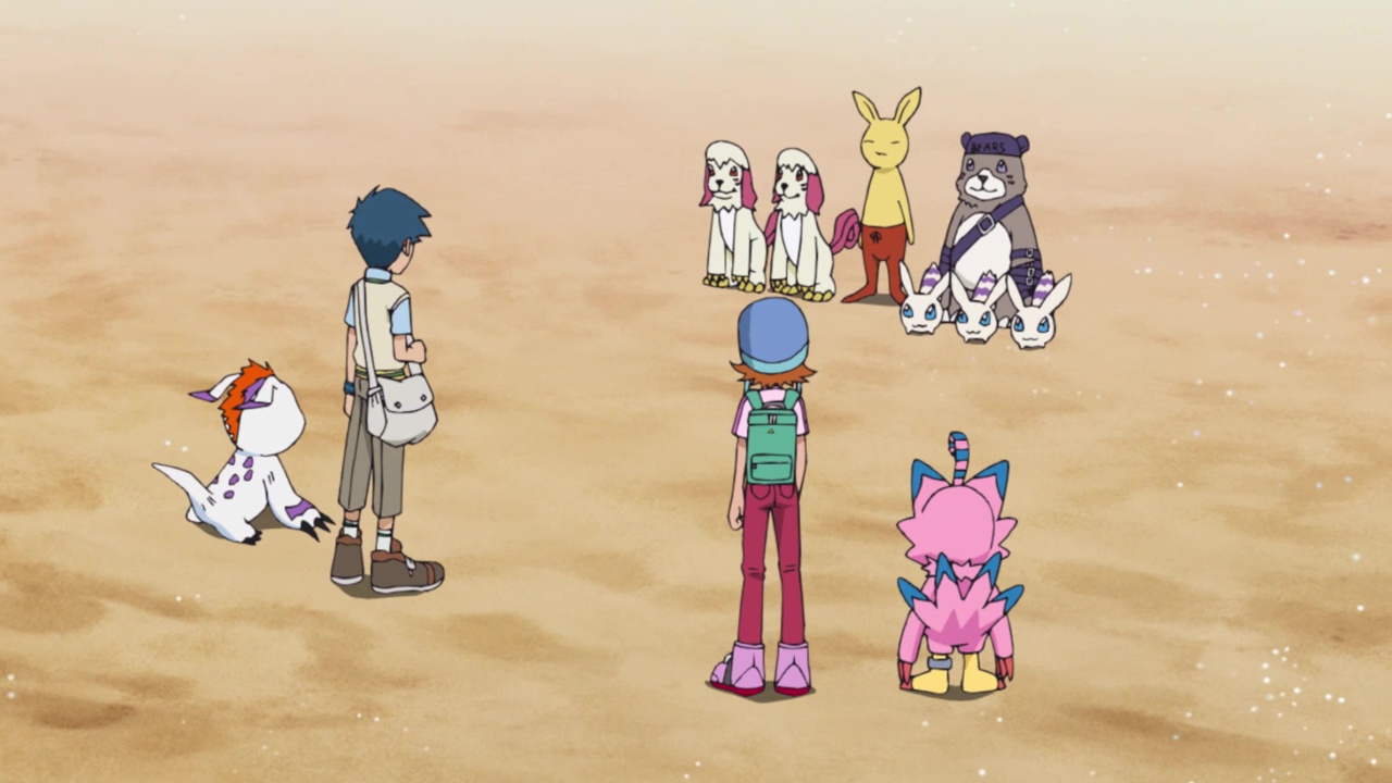 The DigiDestined drop Neamon and its friends off on the other side of the desert. In a very rare moment of transparency, Yamato reveals to Sora and Joe that his reason for rushing earlier was because he has a little brother Takeru who is stranded in Tokyo. I don’t remember Yamato and Takeru’s situation specifically, ie whether they live alone or if their parents are around, but if Takeru (who is still quite little) was left alone in his home then I can understand Yamato’s urge to finish their mission asap.
