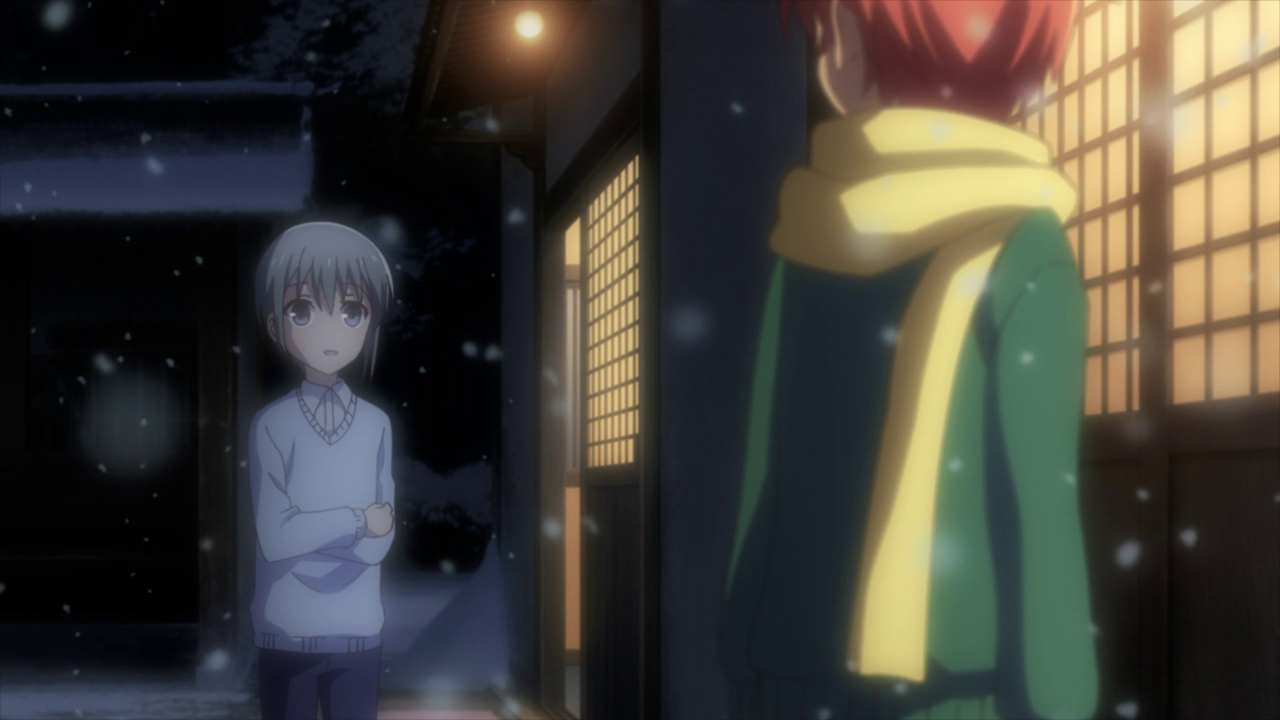I was talking to Berry about the episode and she pointed out how nearly all of the characters in this episode can be easily hated such as Yuki’s mom, Akito, Ayame and Kyo. To which I had to agree because the first time I read this part in the manga, I started just absolutely hating Kyo because of how he treated Yuki. Presently, I don’t hate Kyo, but he still frustrates me from time to time and I cannot stand him in season 1. However, what Kyo says to Yuki in this flashback just makes me so angry. Like, I know the kid has his own problems and it’s really the fault of the Sohma clan for putting all of these poor kids through terrible treatment and such, however, it doesn’t make it any less frustrating, especially when he’s just basing everything off of assumptions. Not to mention him saying those things basically affirm what Akito has been telling Yuki. It especially pains me when Yuki reveals that he just wanted to be friends with Kyo since he was the kind of person Yuki wanted to be, surrounded by friends and a loving parental figure. And it’s just sad that after so long of having Kyo scream his hatred towards him, Yuki goes from just feeling hurt by having the person he looks up to hate him to weary apathy. He is even aware of Kyo’s situation and understand that he has a lot of baggage (completely different from Kyo’s understanding of him) but you can tell that he’s just tired of Kyo’s behavior towards him and it is frustrating for Kyo to just blame all of his misfortune on him while not realizing just how much he has.