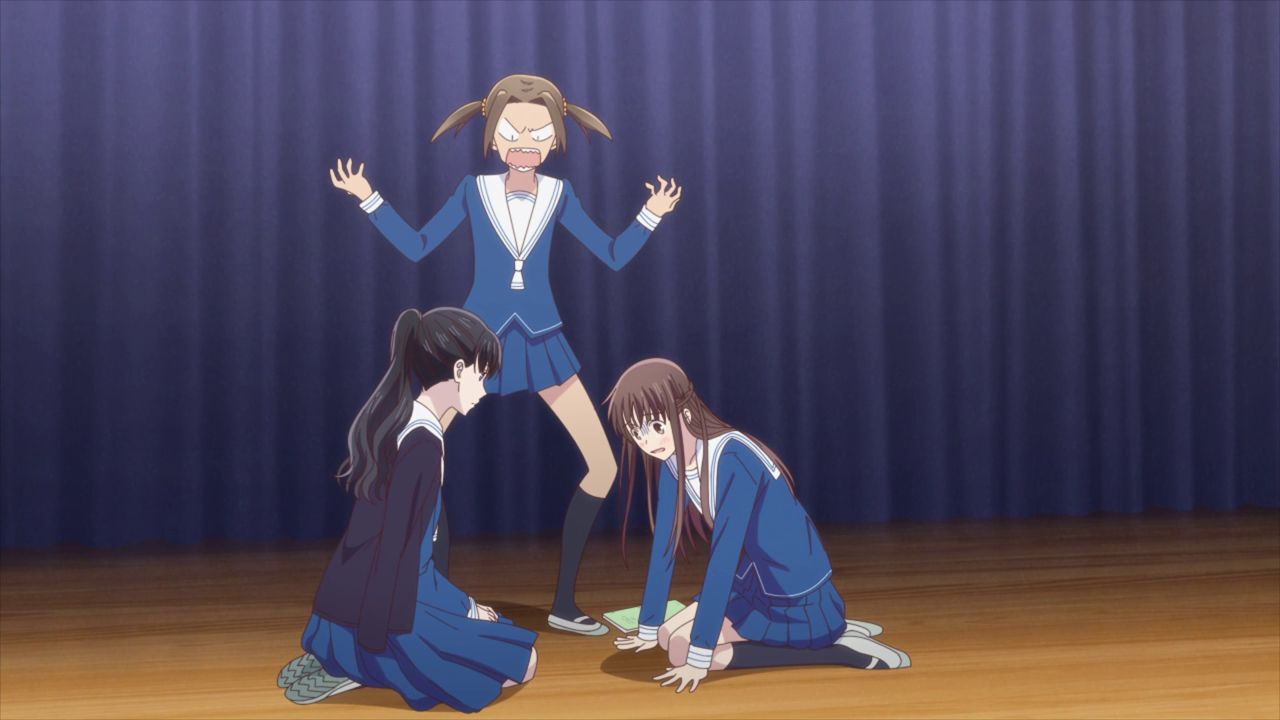 Not gonna lie, my dislike for Kyo bubbled to the surface in this episode. Not only was he just being extremely uncooperative when it came to the play, but his Yuki hatred was really starting to wear on me. I’ve already expressed just how much I hate it when Kyo starts yelling fallacies at Yuki, making him the bad guy so that he doesn’t have to face the reality of things. I literally felt my jaw tighten in anger when Kyo started blaming him again. Especially when we got to see first hand just how terrible Yuki’s situation was. Kyo makes it seem like Yuki had it all, but in reality, Yuki had nothing. No one pre-Haru friendship was there for him and he took matters into his own hands when he ran away that first time. Nothing was ever easy in Yuki’s life. We know that Kyo continues his “hatred” of Yuki because it’s a way to protect himself. However, we also know that this is unhealthy and unproductive as many characters have pointed out. For a while, Yuki just went along with it and it just hurts my heart knowing that Yuki must have felt so hurt by the verbal abuse from Kyo and he couldn’t help but lash out, especially since it came from someone he admired. It’s like, who the heck do you think you are to say that to him? It’s a coping mechanic, I know, but it by no means justifies Kyo’s actions.