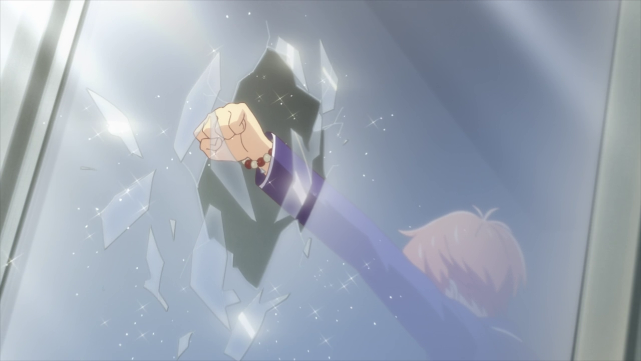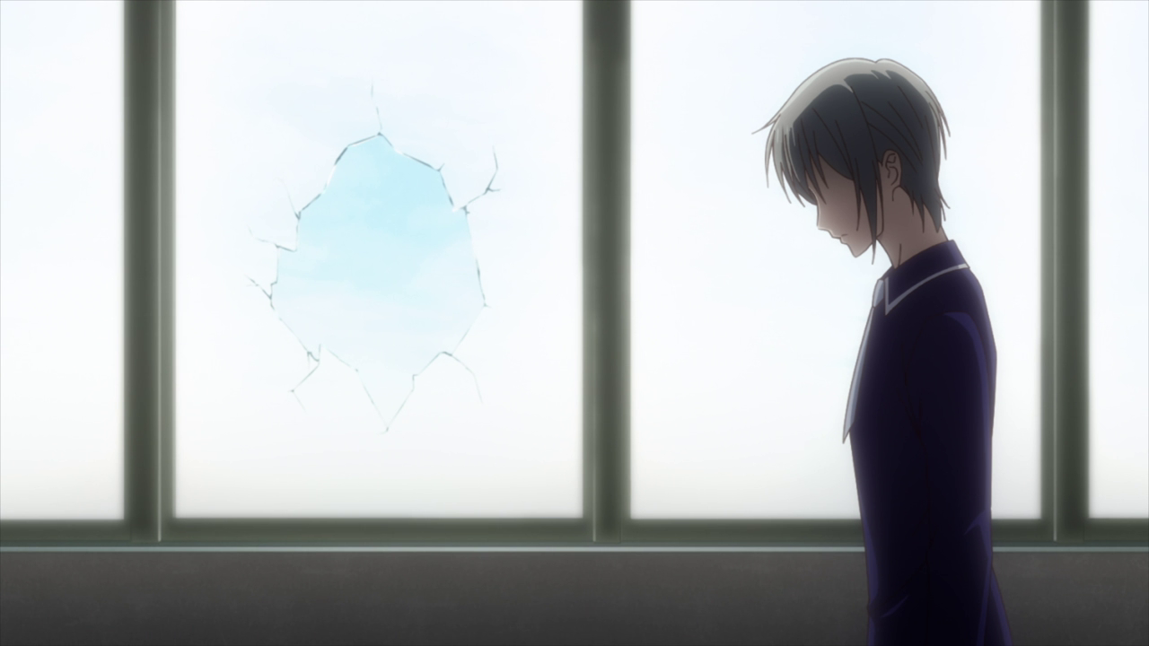 But man, I just absolutely loved Yuki’s side of this scene. He is first shown to be in a closed, stand-offish position with his arms crossed and back towards Kyo. However, as Kyo was yelling at him, he slowly unfolded his arms and finally turned to look at Kyo with the most vulnerable expression he’s probably ever shown him. That scene felt so powerful because in a sense, it was Yuki silently telling Kyo he’s done playing along with him and he won’t continue this cycle of hatred. He’s hurt and he isn’t hiding it from Kyo anymore. I also love the imagery of Yuki standing in the light because he has opened himself up to change and willingness to let others in now. While Kyo is still lingering in the shadows, still unable to escape his internal darkness and let go of his unjustified hatred. And when he sees that Yuki isn’t going to act like his villain anymore, he snapped and punched a window. If I were to wager a guess, I feel like the broken window represents the first breaking point to their usual dynamic and it could lead to a possible first good step to a change in their relationship. Because at this point, Yuki isn’t going to react the way Kyo wants him to anymore. He’s tired of it and he does want this relationship to change for the good of both of them.