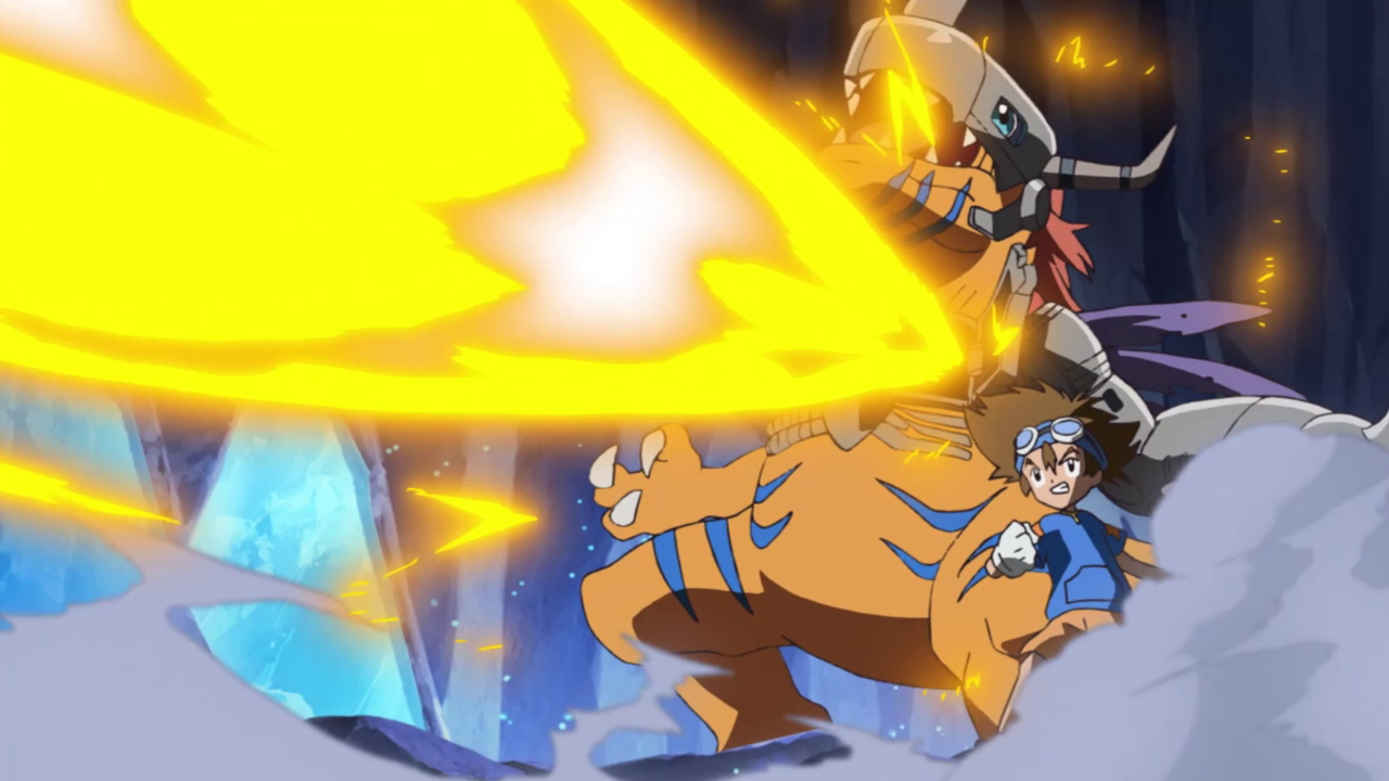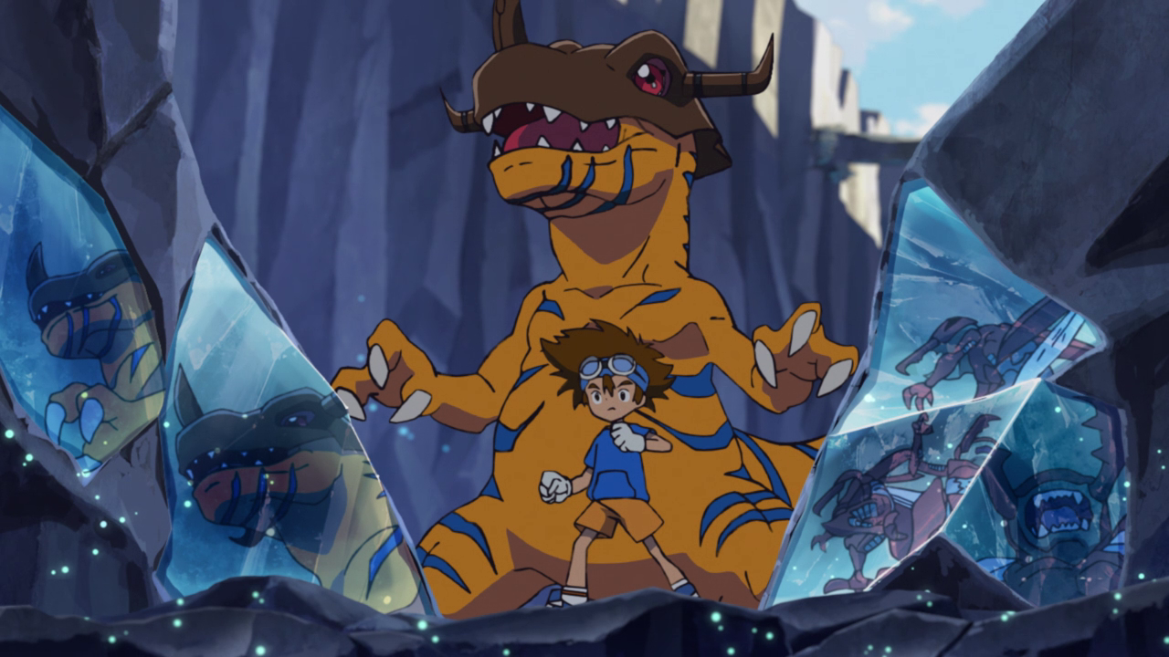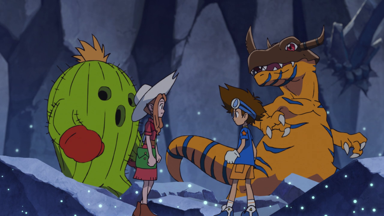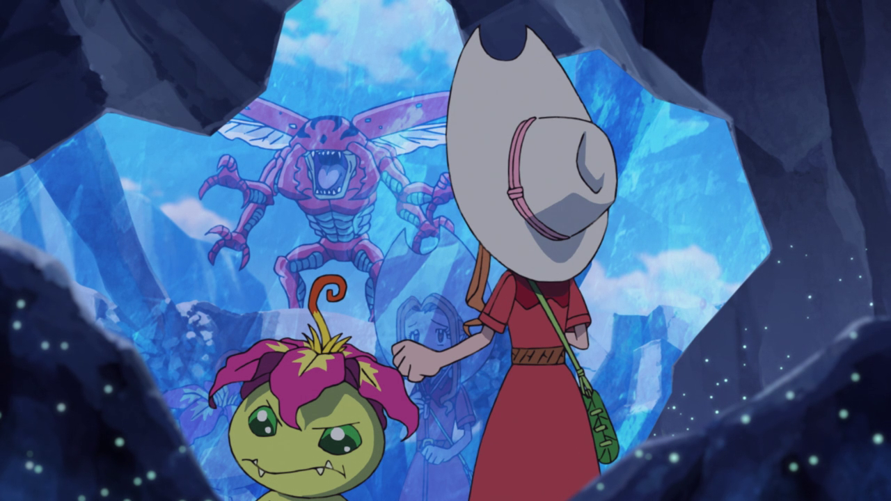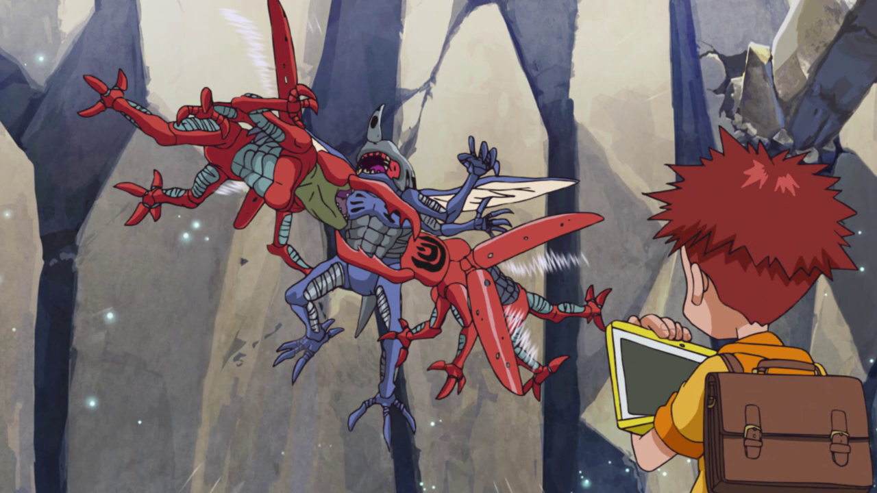 The group carries on with their mission as they find themselves wandering into a maze of sorts. I feel like it was a missed opportunity to have more of those mirror gems, but I digress. A pack of Kuwagamon attack, severely outnumbering and outpowering the group. Whenever I see Kuwagamon, I always remember it as the first “boss” in the original series so it was nice to see it make an appearance. I’m just sad it doesn’t make dinosaur noises anymore… unless that was just a dub thing.