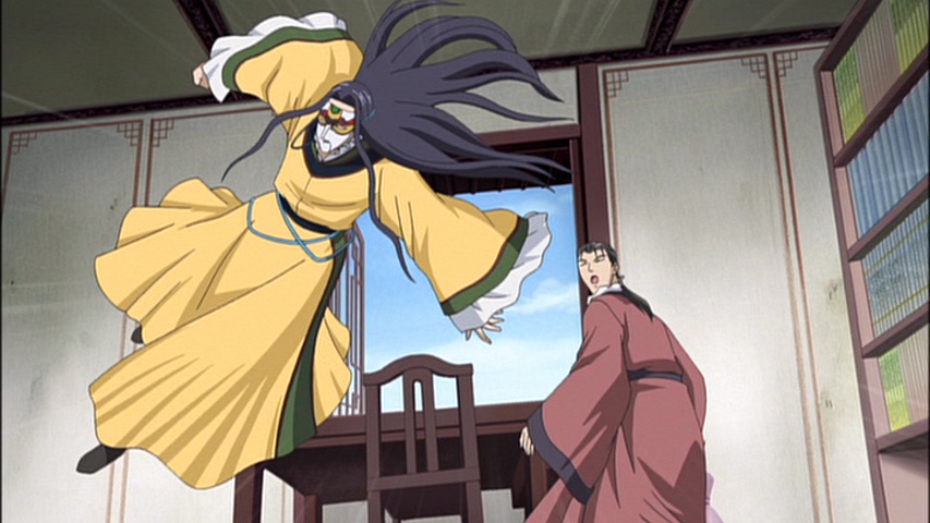 The father of Shuurei’s student Ryuushin, who was indirectly the reason for Shuurei getting sick in the first place, stops by the Kou household to apologize for his son’s behavior. The father also reveals that Ryuushin has gone missing. Shuurei’s family and friends immediately decide to go try to find the missing child. Kouyuu leaves for his household to get some protective gear and torches ready, while Seiran and Shuuei leave for the palace to gather some horses. Reishin can’t help being rude and Shouka is quick to chide Reishin with a small slap to his forehead. Shouka alters the group’s plans by asking Seiran to help Kouyuu, and asks Shuuei to get horses from Reishin’s household instead.