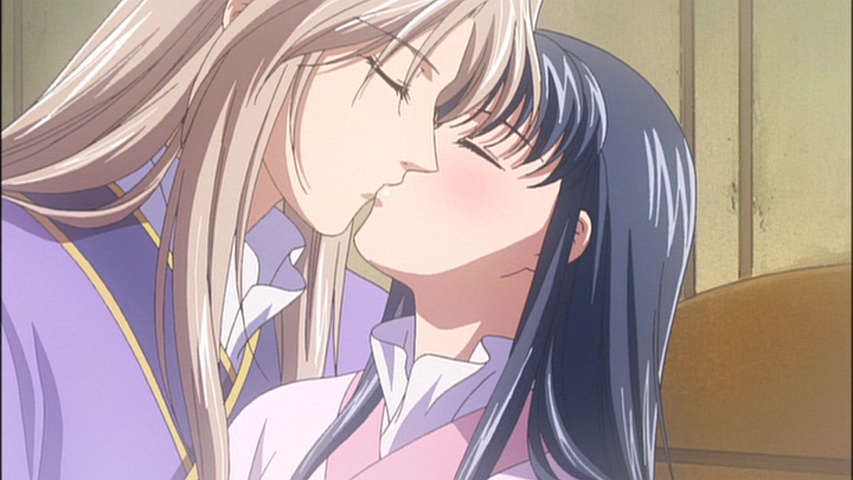 Meanwhile, on top of this giant mess of a situation, Ryuuki has secretly arrived to check on Shuurei. She’s very warm so Ryuuki creates an icepack using snow from outside to keep her forehead cool. Shuurei murmurs about being thirsty so Ryuuki props her up to give her some water from some kind of small teapot. Ryuuki wants to give Shuurei some medicine so he puts it in his mouth, then passes it to her by kissing her.