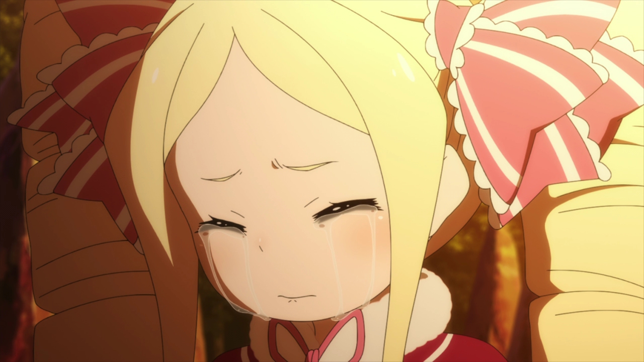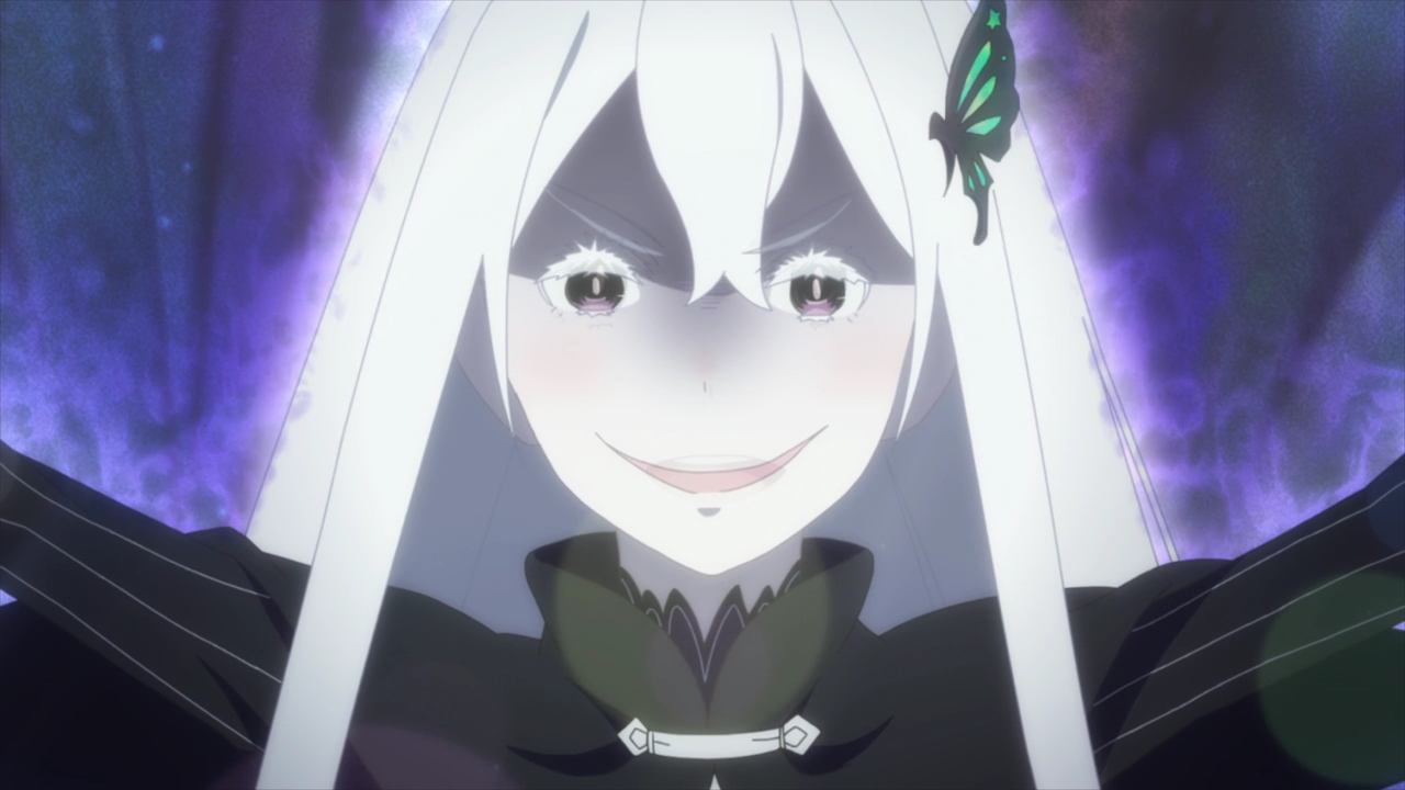 Echidna shows her true colors, and she’s a witch to the core and it’s not surprising. I never fully trusted her but her unabashed love for knowledge, wanting to take advantage of Return by Death, and not feeling a single thing for Beatrice was pretty awful. That entire speech of hers was extremely unsettling, especially when I’m not a fan of the super obsessive crazy characters. That speech, the music, the sparkles, camera angles, and that smile…NOPE. No thank you, I’ll pass. I’m glad that Subaru backed out of it, but things suddenly get worse when Satella casually struts in. It’s weird that only a few of the witches there showed a negative reaction, while a couple others were excited. But to be honest, I don’t really know anything about them so there might be some reveals next time. I can’t possibly imagine what will become of this tea party now that Satella is there, but with Echidna trying to take Subaru away from her, it maybe won’t go well. Still, it’s exciting that we’ll possibly hear Satella speak for once. You know, without the million “aishteru…aishteru…aishteru…”