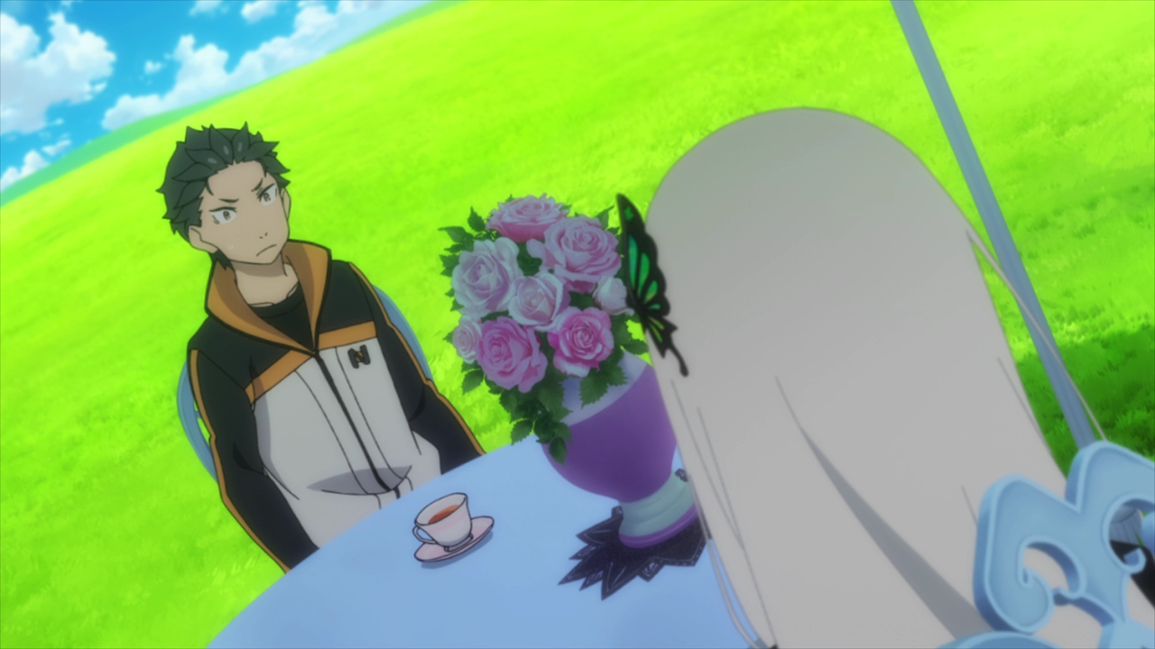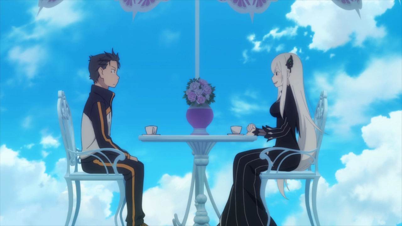 Subaru wakes up and heads to the ruins in this new time loop, hoping to speak with Echidna and get some help. However, he was accidentally thrust into the second trial and it took me awhile to understand what was happening. We don’t really know for sure if there actually are parallel worlds Subaru left behind, with the characters having to deal with the aftermath of his death. The second trial, like the first, takes the memories in Subaru’s mind and creates a world from it, but since Satella has the authority over Return by Death, we have no idea if what we saw was real or not. I’m not quite sure how I feel about that if that were to be true, the problem was that this second trial happened a little too quickly. I was intrigued by it but it all ended too quickly before I could really get into it. I suppose the episode wanted to get to the witch’s tea party as quickly as possible since I feel that would have been more entertaining to most people. Also, fake Rem appeared and at least he was able to figure out she was a fake. From what Echidna revealed afterwards, it doesn’t sound like Subaru even passed the trial…I think. Again, it happened too quickly for me to understand. But man…if Emilia can’t even pass the first trial, I don’t know how she’ll be able to pass the second one. T_T
