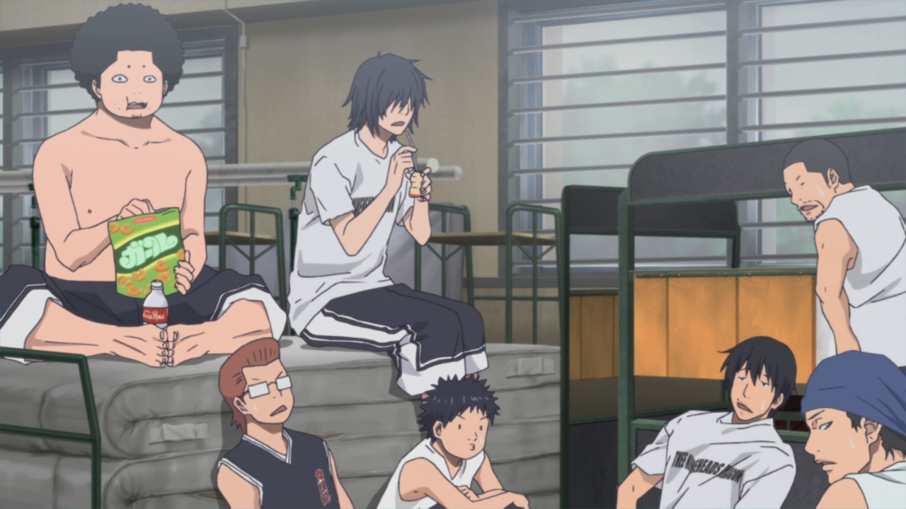 But! It isn’t as if we’re frozen in time without any progression. In fact, I would argue that a great deal of character development occurs during these moments. Yes, it is frustrating to be pulled between the two, but I feel that the characters really drive this series. They are consistently growing and becoming more complex. We’re given a set of delinquents who, in the beginning weren’t… exactly shown to be the best and a bright-eyed Freshman looking to pursue his dream. And overtime we get to learn more about these characters and what drove them to the way they are now. Not everyone became the way they were because of bad experiences or desires to not have bad experiences with Basketball. But, over time they all come together and grow because of the sport and quite frankly, I’m a sucker for stuff like that. You take a motley set of characters and allow them opportunity to grow and find passion again and personally, I think that’s a recipe for a solid story. And their growth is not always moving in the positive direction. There are plenty of setbacks and mistakes that characters make. They aren’t always on the path to move forward to accomplish their goals. They do fall by the wayside. They aren’t prefect characters, they are also rough around the edges, but that’s part of what makes them charming. All the characters really bring this series together.