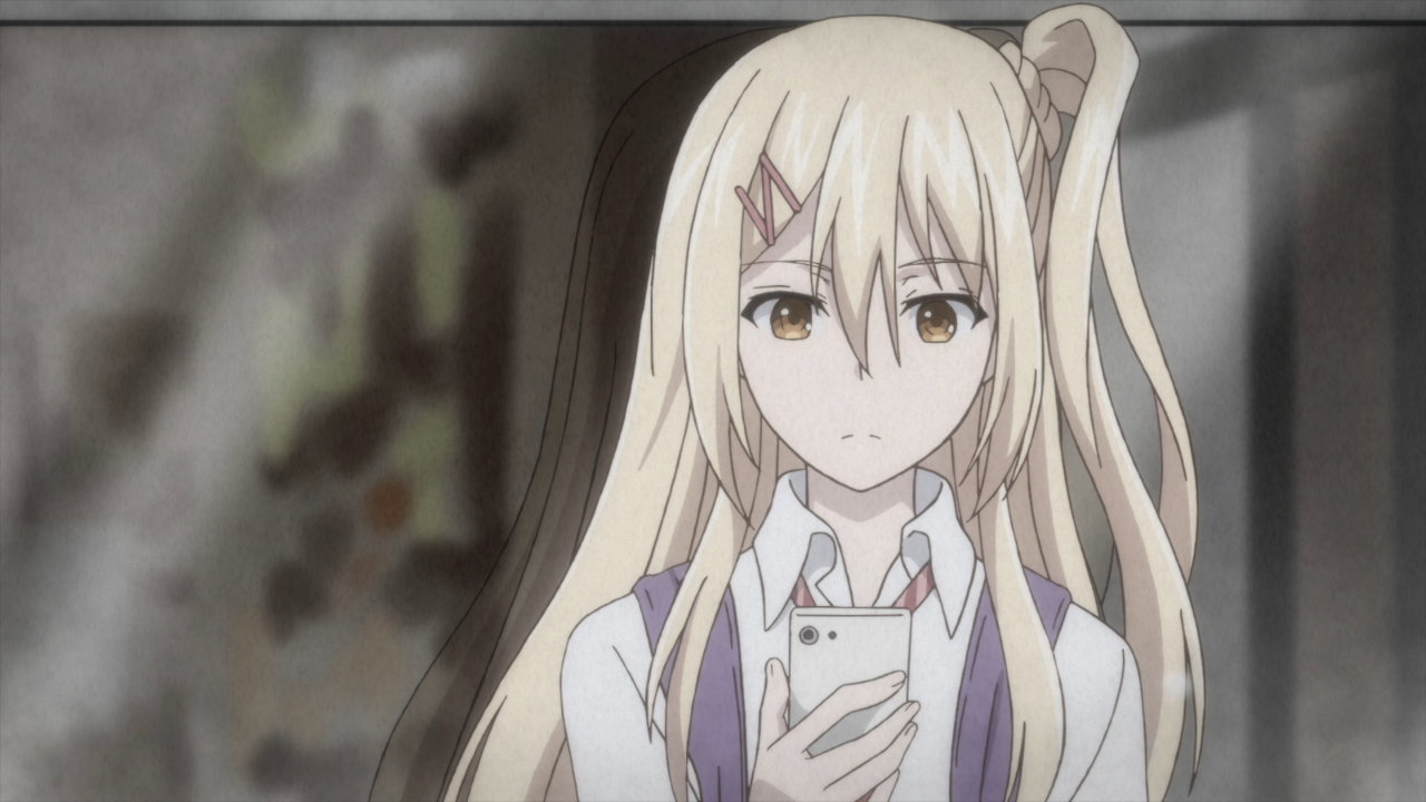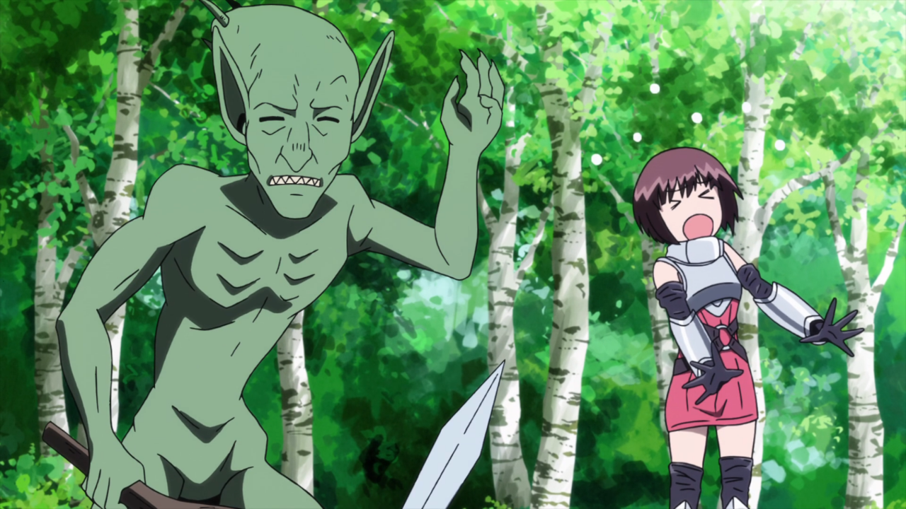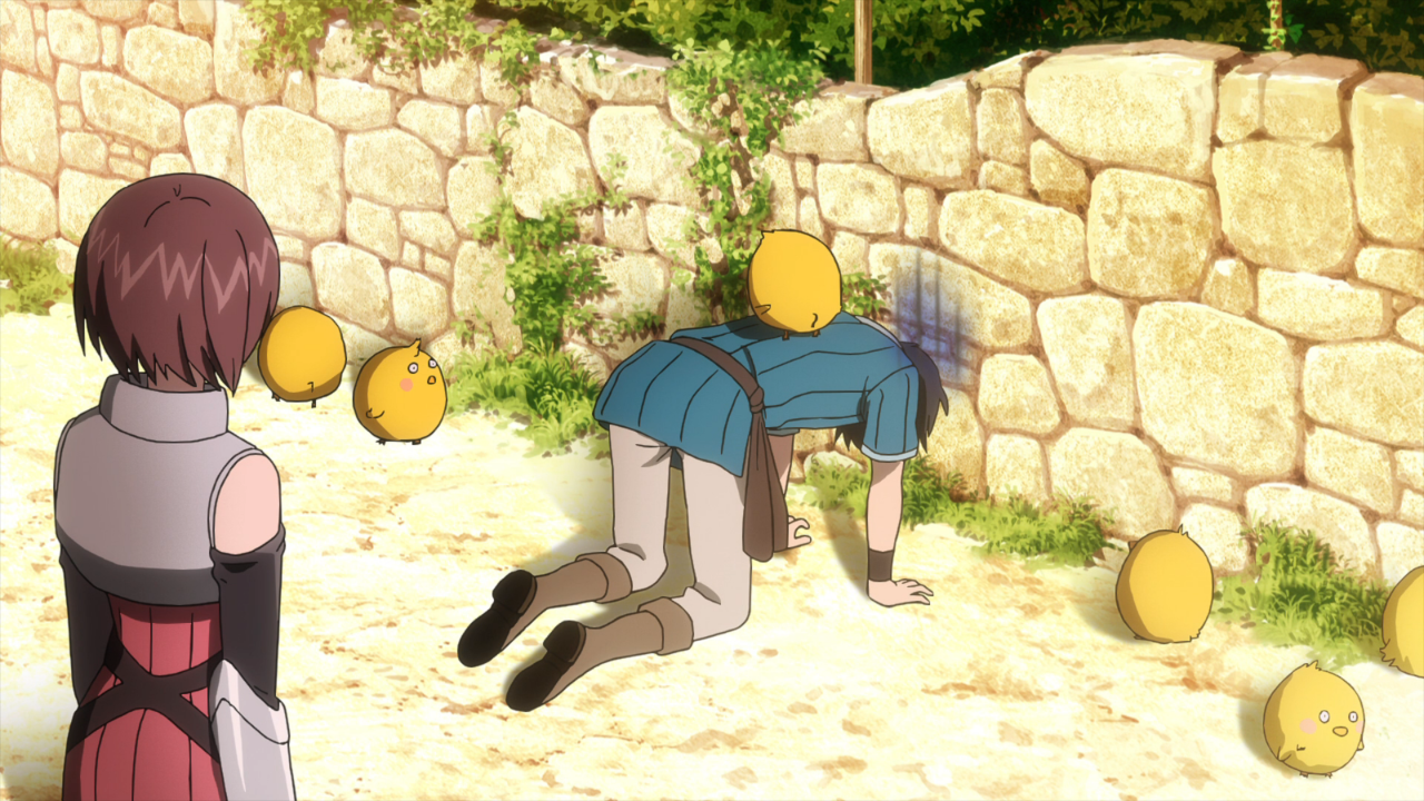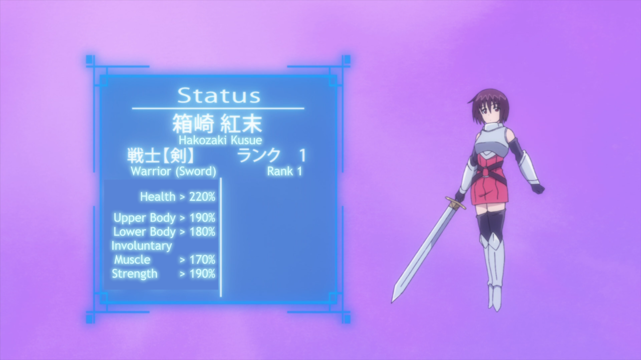 Let’s talk the characters. So far none of them really stand out as unique, but I do appreciate the potential that they all have by being such low level. It’s not uncommon to have a completely OP protagonist or an absolute beginner protag with a team of people who can at least carry them until they are able to level up. Instead we’ve got three very weak characters who really need to focus on just staying alive. First, we have Yotsuya who is our token protagonist who has found themselves stuck in another world with the opportunity to return to his own if he manages to complete the task. But why would he want to do that? It’s made pretty clear he has some pretty edgy feelings towards being in the real world. He doesn’t have any friends, hates the city, and would honestly prefer to just stay home and play video games. So naturally, he gets to be the protagonist because he has at least a little bit of knowledge for how video games work. Then we have Hakozaki, the second person to get sucked up into the world, who is pretty much your typical scared girl type character. Just like Yotsuya, she’s pretty much a nobody at school because she’s consistently out sick. As of right now, she really can’t do much in this game, but she does have the potential to get stronger. But for now she’s just a liability. Then we have Shindou, the one who ended up bringing both of the others here. But unlike the other two, she’s super popular at school and a model! Wow! We don’t actually get very much detail on her (or Hakozaki for that matter) in this episode primarily because she’s… stuck in limbo until the other two can complete the quest. So overall, there’s potential with all of these characters, but we just haven’t started to see it yet.